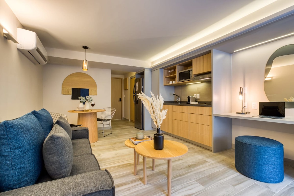 Capitalia Juarez | 中心单间公寓 + 阳台和健身房