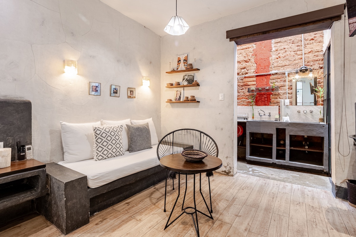 Experience sunshine, comfort, and unforgettable city views from your private rooftop garden. Relax in a safe, vibrant neighborhood—just steps away from top museums, theaters, trendy restaurants, cafes, and shops. * King-size bed & living room area with futon * Fully-equipped kitchen * Internet, cable TV * Exclusive rooftop garden overlooking the lively plaza *Great for foodies lovers *Trendy *Private *Safe Book now for the perfect getaway in historic downtown Mexico City.
