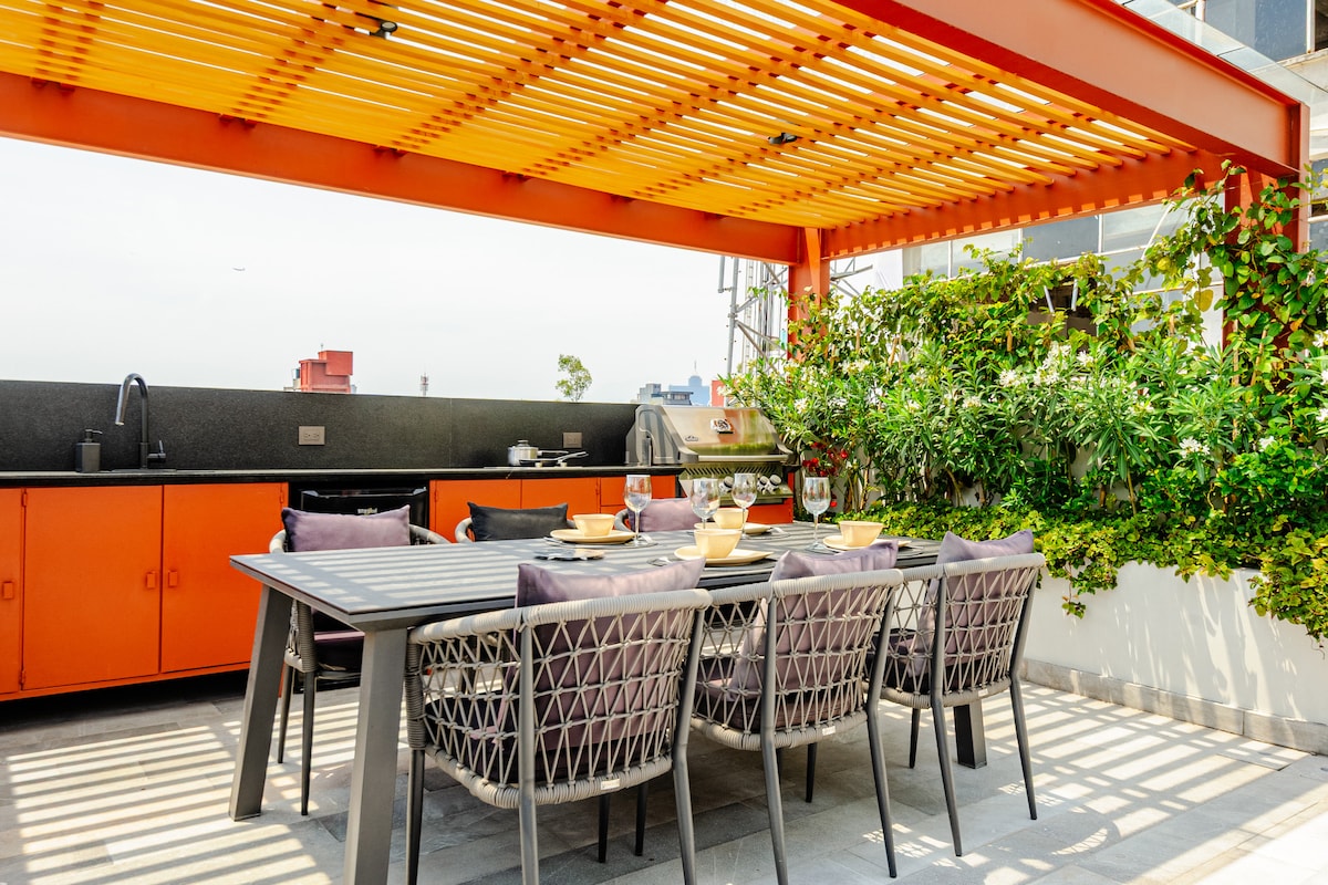 Enjoy amazing views of the city and the famed Bosque Chapultepec from your own private terrace. Located in San Miguel Chapultepec- a safe, upscale residential neighborhood- you'll be less than a 10 min walk from the popular Condesa & Roma neighborhoods, home to many of the cities best eateries and world renowned restaurants. Walking distance to some of the best galleries + museums: MAM, Rufino Tamayo, Castillo Chapultepec, Kurimanzutto, Casa Estudio Luis Barragan , Casa Gilardi (w/reservation)