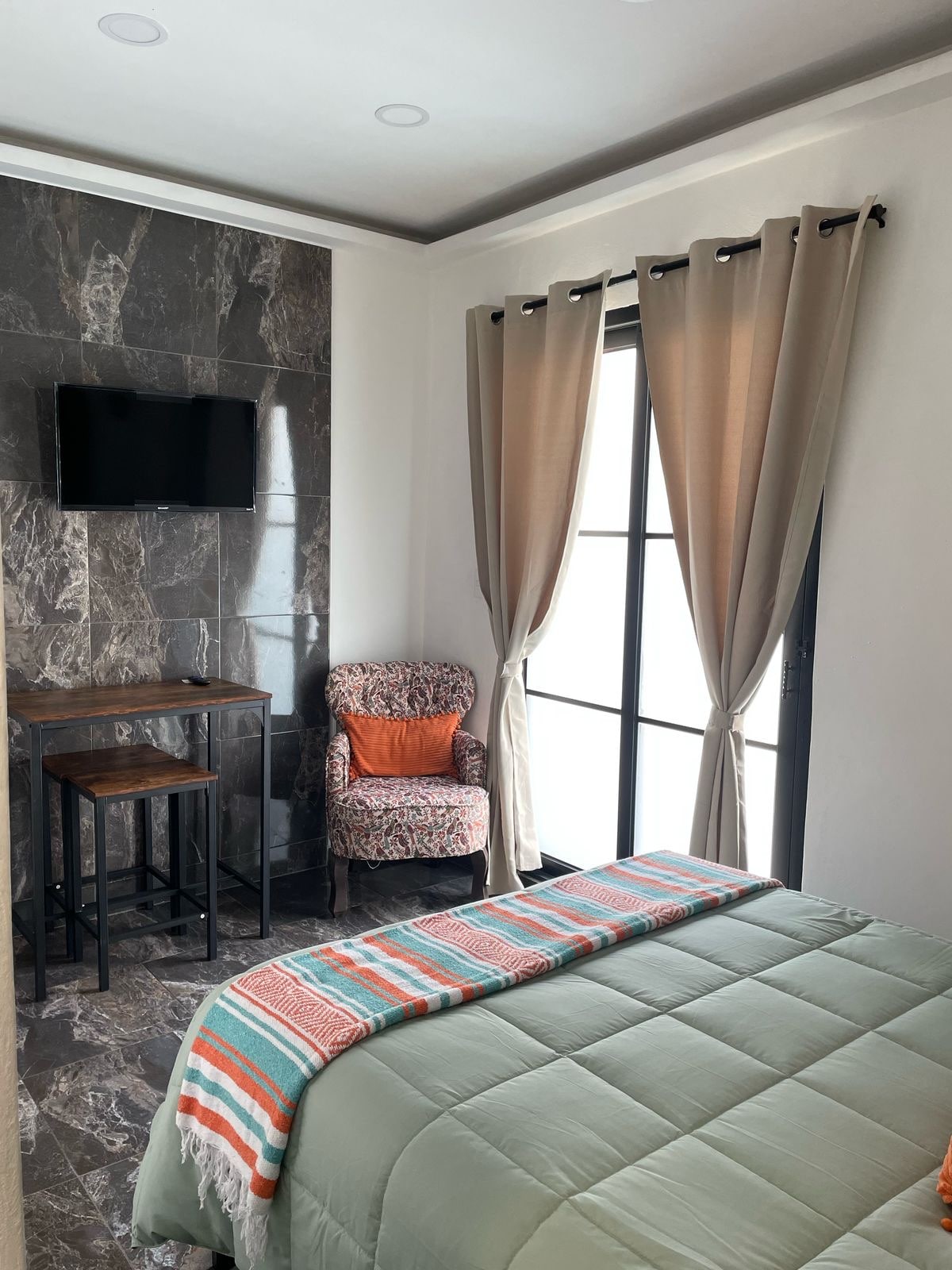 Private, colorful, functional space with patio and greenery, ideal for solo travelers. Features a full-size bed, seating area, workspace, fully equipped kitchen, TV, and fast WiFi. Bright, comfortable, and quiet atmosphere. Located in Escandón, an authentic, well-connected neighborhood near Condesa, Roma, and local cafés. Ideal for remote work or city exploration, offering excellent location and value.