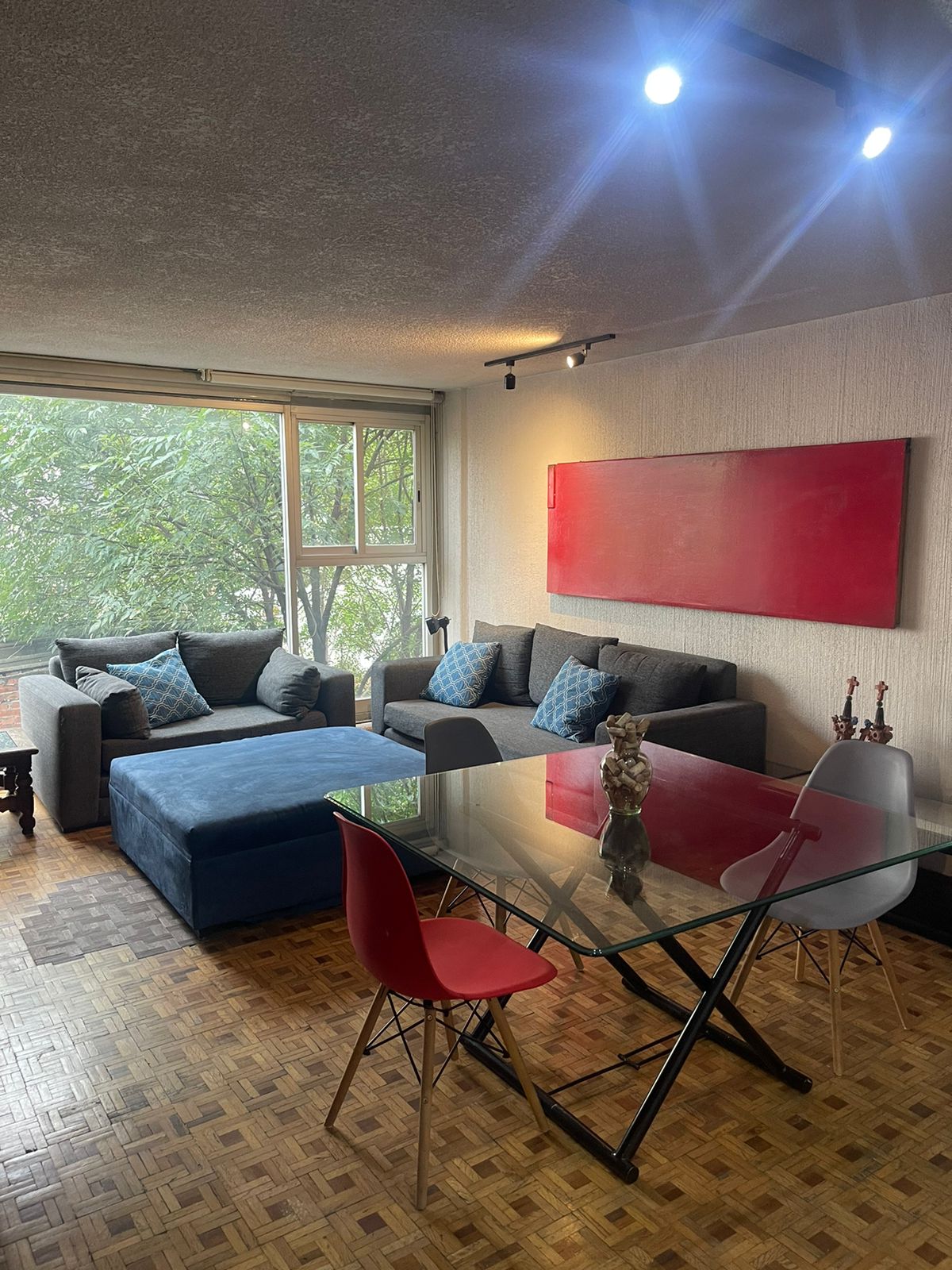 Lindo departamento nuevo y amueblado, muy cómodo y elegante enfrente de torre mayor y torre BBVA, a unos metros del ángel de la independencia y la embajada de estados unidos. Excelente ambiente, tranquilo y muy céntrico. Existe variedad de restaurantes a su alrededor y tiendas. El departamento mide 107m, tiene una ubicación ideal para personas que vienen de paseo como para las que trabajan en la ciudad. Se pueden alojar cómodamente de 4 a 5 personas, cuenta con 2 habitaciones y 2 baños completos