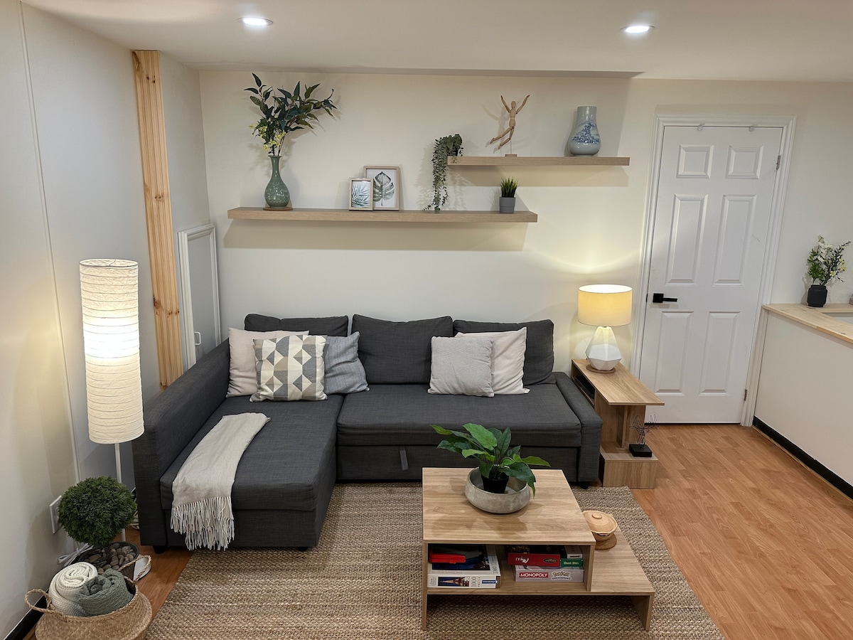 Entire lower level unit. Very clean and cozy unit in a great friendly neighborhood. The unit is bright and airy. The bathroom and kitchen is yours to use. Separate entrance through the side door of the house. Closet space to store your luggage and clothes. Coffee machine with pods and kettle are at your disposable. Extra blankets and pillows are available upon request. While the unit offers a private setup, the main house may also be accessed or shared as per your needs.