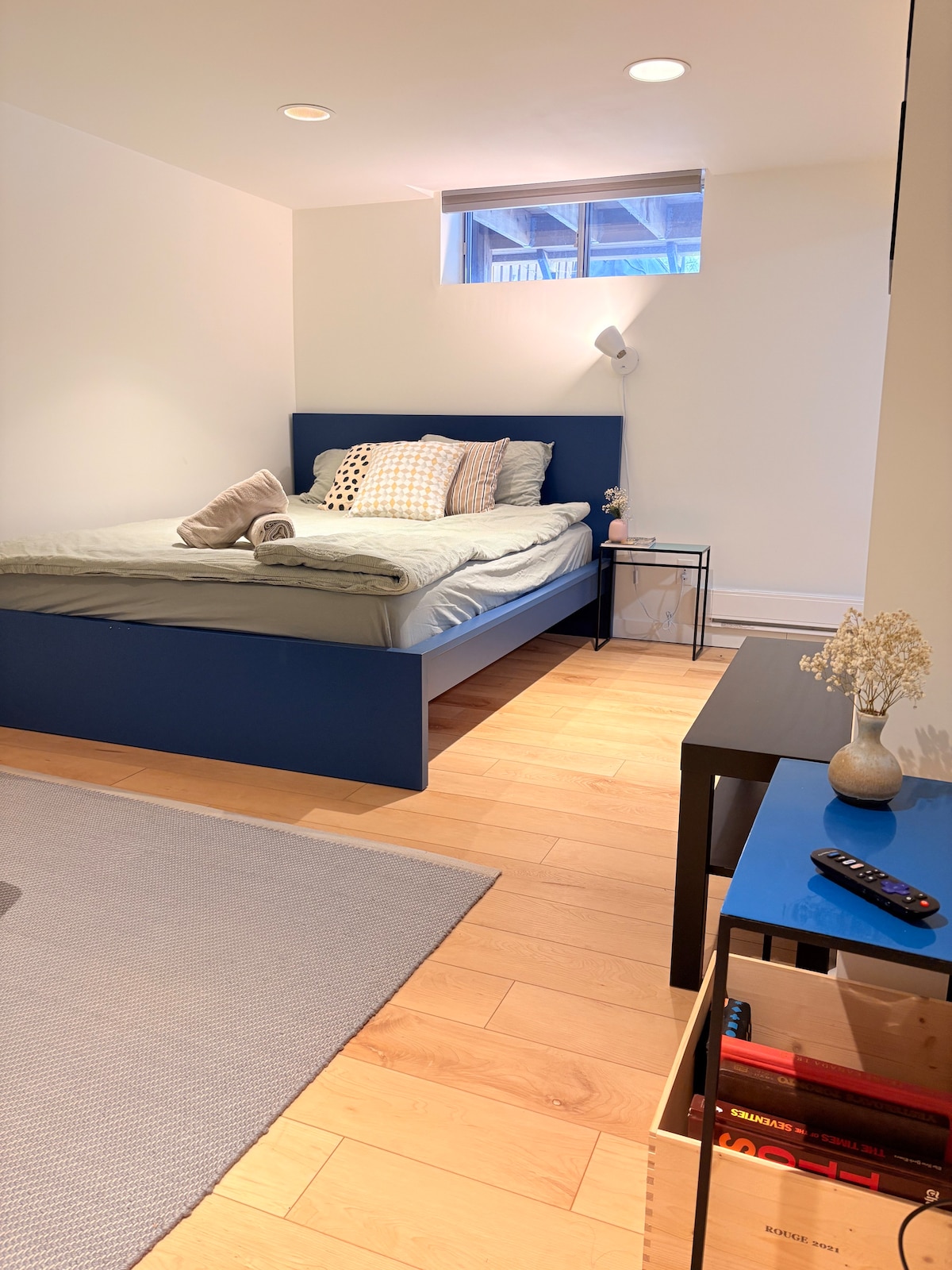 This centrally located private space is newly updated with new flooring, furniture, and bathroom. It includes a separate entrance with its own kitchen and laundry. Very quiet residential neighbourhood with old growth trees. Walking distance to Christie subway station or Dupont subway station. Be downtown within 20 minutes. Close to Koreatown and many great restaurants on Bloor Street. 5 min walk to 4 grocery stores and LCBO. Basement space not suitable for people over 6 feet tall.