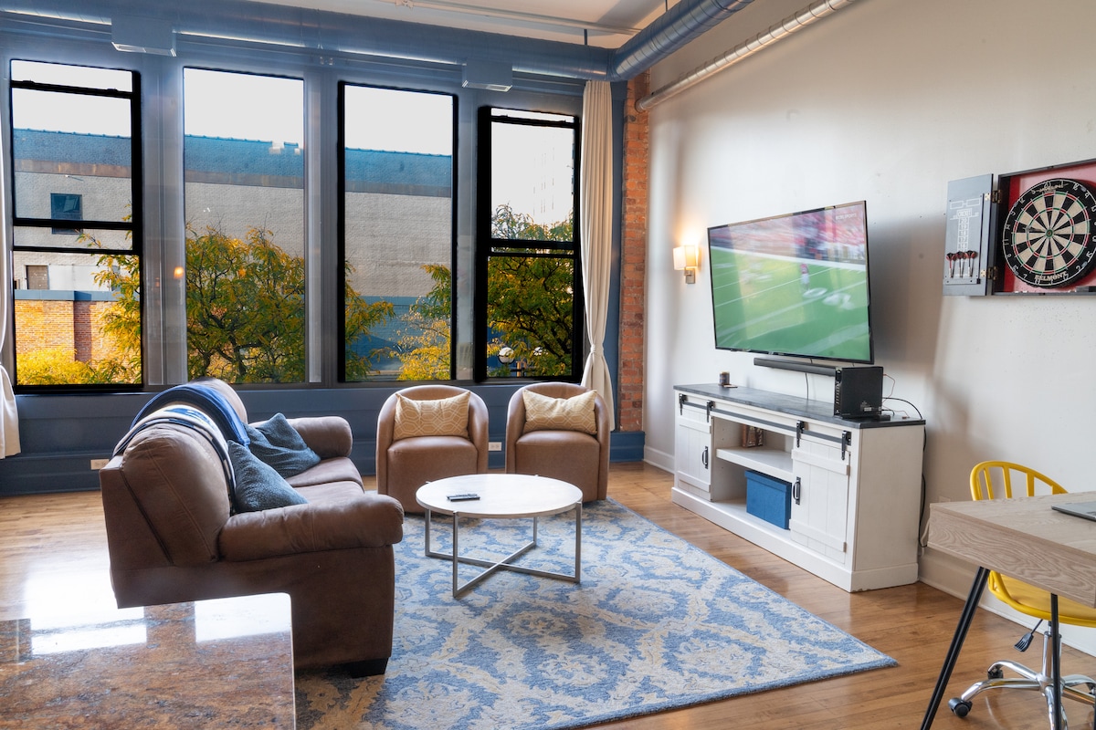 This loft is located in downtown Ann Arbor. Walking distance to all U of M sports, central and south campus, and all that downtown Ann Arbor has to offer. This 2 bedroom unit is 1600 sq ft. A great place to stay and enjoy all the great things that Ann Arbor is known for! Dining, shopping, U of M, Michigan Medicine. This space is large and relaxing in the heart of downtown. Parking 2 blocks away! The loft sleeps 6 very comfortably with 2 kings and 1 queen. Sofa sleeper makes 7-8.