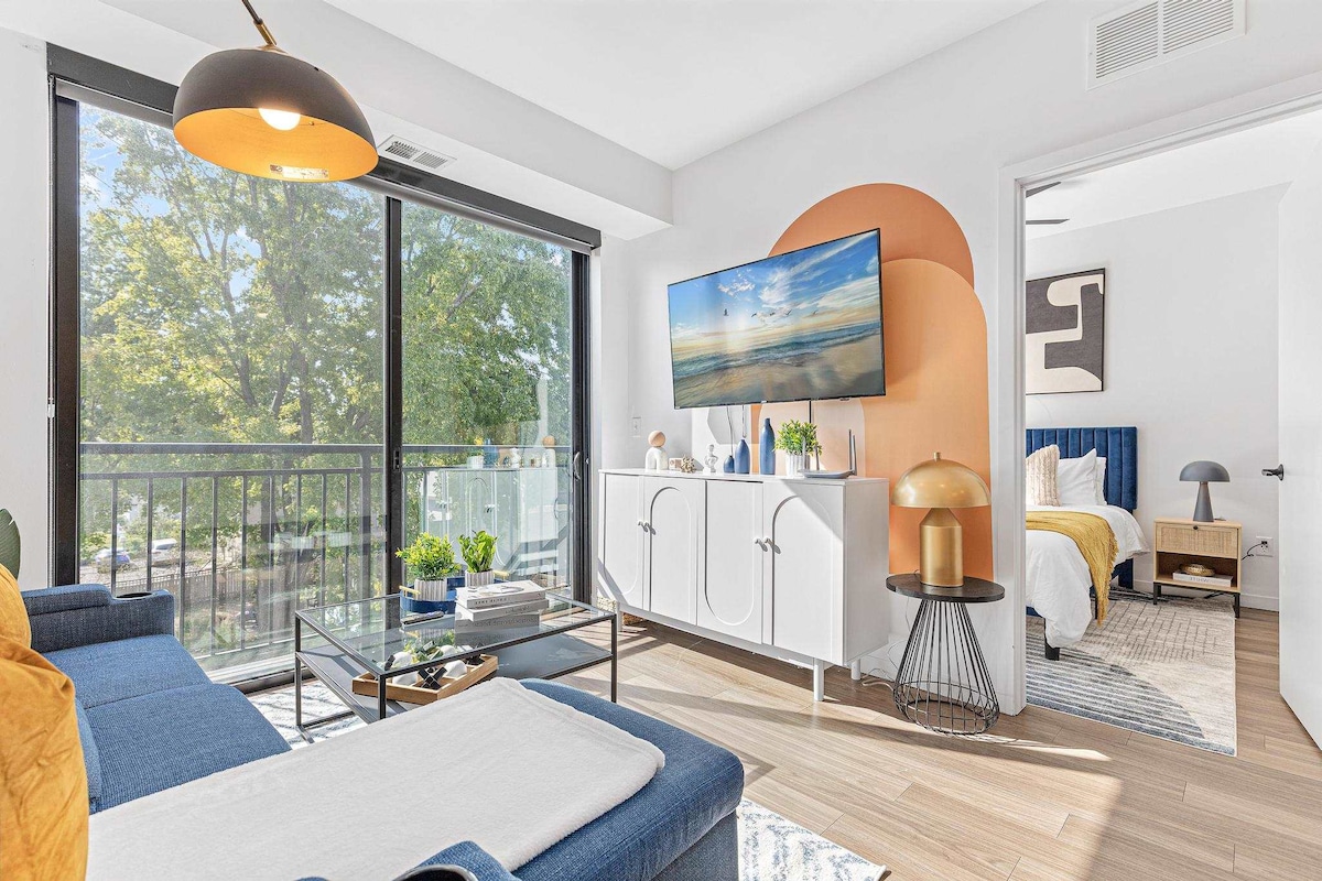 Step into a true urban retreat that has been fully renovated, offering 1,000 sq. feet of inspiring space. The modern European kitchen awaits your culinary adventures, while the serene living room, adorned with a large fireplace and 75" TV, invites relaxation. Flow seamlessly into the airy bedroom, featuring a king-size bed and a dedicated workspace. The bathroom, with its floor-to-ceiling tiles and luxurious rain shower, exudes elegance. For comfort, this unit, fully air-conditioned and heated.