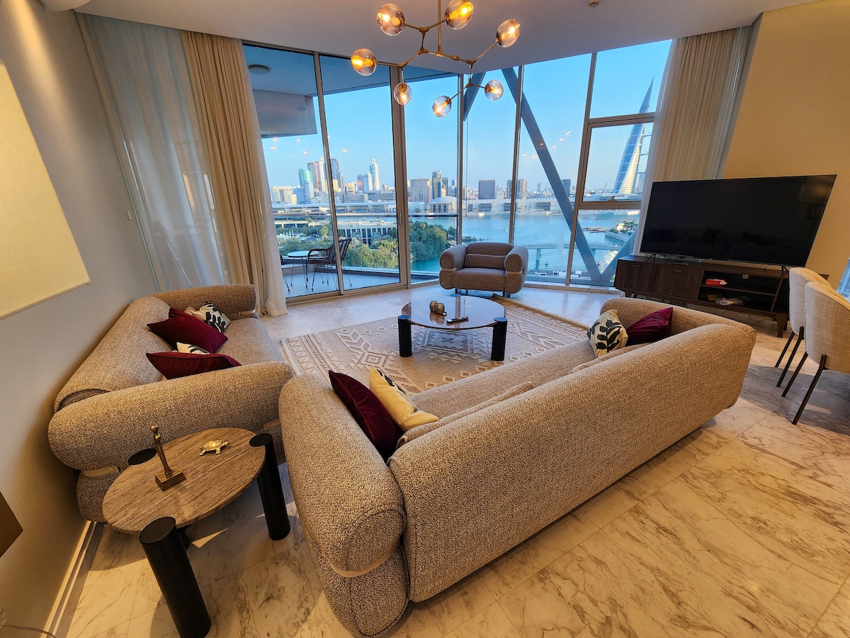 Relax and unwind in this fully furnished one-bedroom apartment located in the heart of Bahrain Bay, offering a beautiful sea view and balcony overlooking the Four Seasons. 🏡 The Space • One bedroom with a comfortable king-size bed • Living area with sofa and additional • Can accommodate up to 3 adults • Private balcony with stunning sea 📍 Location • Prime location in Bahrain Bay • Walking distance or short drive to Four Seasons Hotel, restaurants, cafés, and major attractions