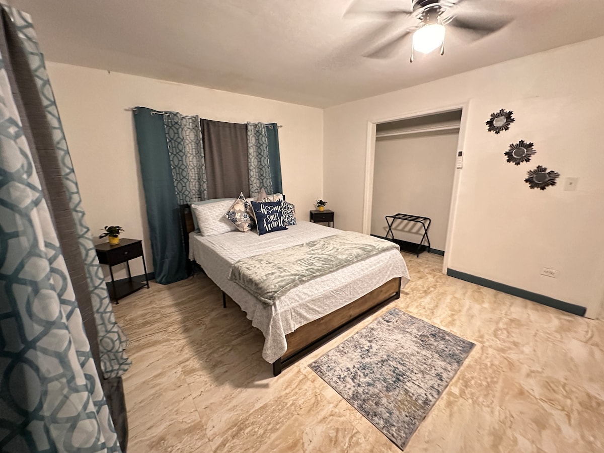 Kick back and relax in this calm, stylish space. This modern and charming 1 bedroom 1 bathroom apartment is located in Coral Harbour within walking distance to the beach and an 8 minute drive to the airport. The apartment is stylishly designed with comfort in mind and has its own privately enclosed space. The apartment is in a safe and quiet area and is ideal for a relaxing vacation, business travel or extended stay. This home away from home also has a pool and grill for your enjoyment.