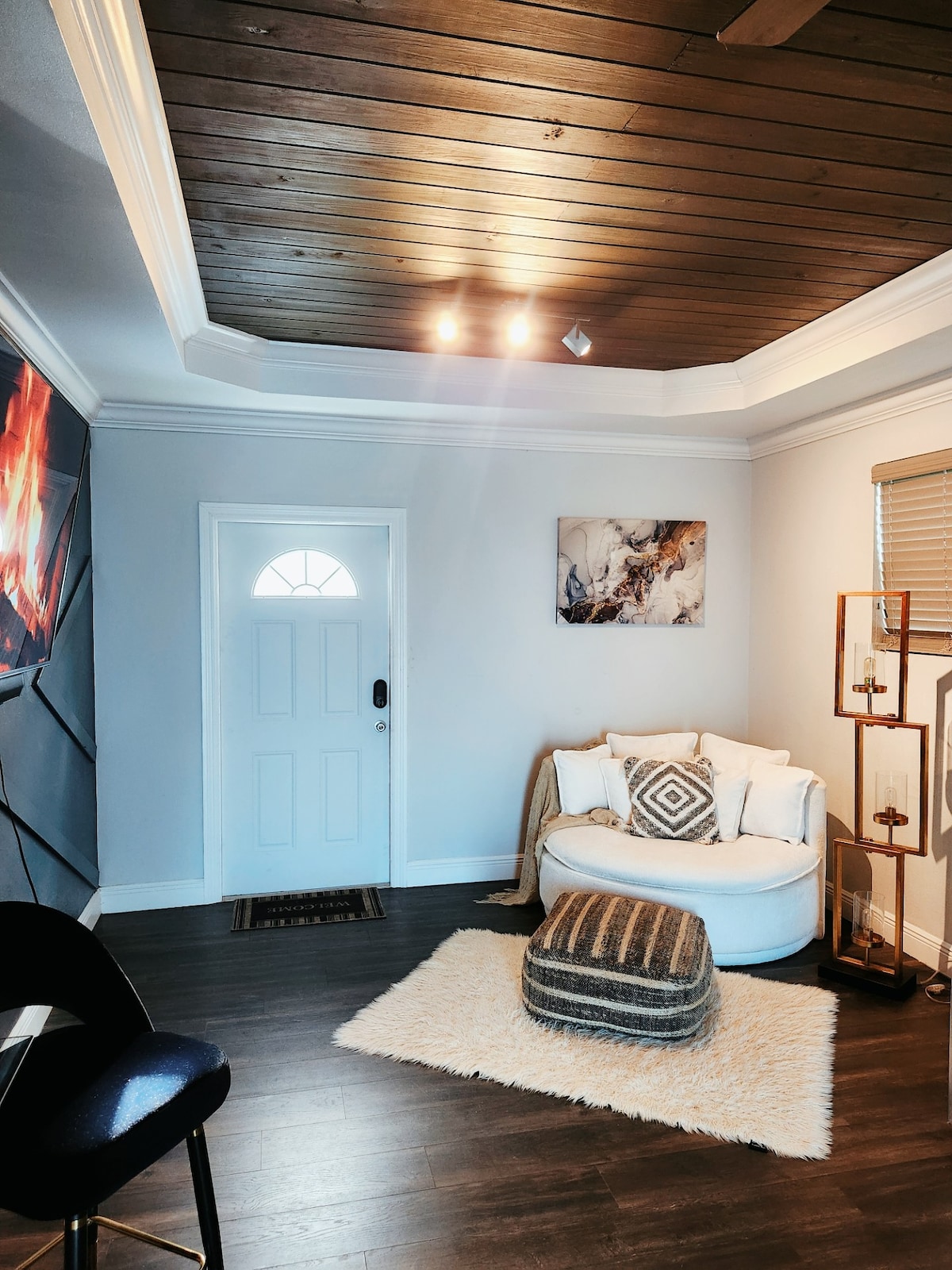 Welcome to The Retreat — your private luxury escape. This one-bedroom coastal getaway blends sleek modern design with island serenity, just five minutes from the beach. Enjoy a cinematic home theater, 65-inch Smart TVs, and a full kitchen with stainless steel appliances. Every detail, from boutique finishes to cozy touches, creates a space of elegance, comfort, and pure island bliss — perfect for couples or solo travelers.