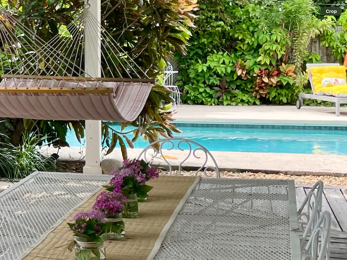 This charming 1-bedroom suite, nestled in a tropical paradise, is 1 of 2 separate units in a cottage for up to 2 adult guests (owner lives on property). Includes queen bed, 1 bath, kitchenette, swimming pool w/water feature, treehouse, hammocks, private guest entrance w/ security access code, & free parking. A 7 mins drive from airport, 5 mins drive to nearest beach, 5 mins walk to eateries, grocery store, pharmacy & ATM. Ideal for couples, solo travellers or friends. Rental car recommended.