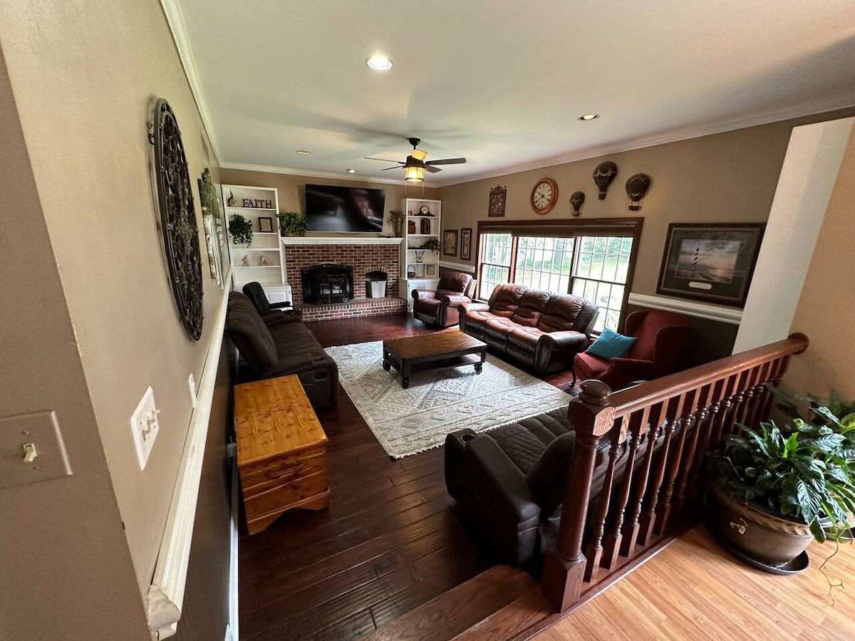 Relax at this spacious 4,125 sqft, top-quality home on 1 acre. This 7-bedroom, 2.5 bathroom home features a private pool, gym, sauna, and a massive family room with 10 ft ceilings, and a 67 " Smart TV. Enjoy the large 1st class chef's kitchen with all the cooking & serving supplies you will ever need. Enjoy the modern amenities, multiple workspaces, a wrap-around porch, a fire pit, & a grill. Ideal for family events, quiet getaways, sports teams, & business meetings. You are able to have your l