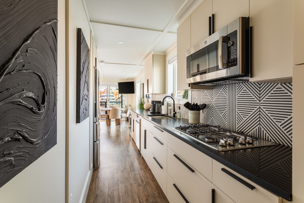 FLOHOM 7 | Harbor Hideaway is a two-bedroom, two-bathroom luxury houseboat with king beds in both rooms at Lighthouse Point Marina in Canton. Rooftop fire pit, 8-seat dining, sectional sofa, and Outer Harbor views. Fully equipped kitchen, Starlink WiFi, and designer interiors. Includes 2 parking passes and seasonal pool access. Walk to O'Donnell Square, Canton Waterfront Park, and the water taxi. The upgraded Canton stay where the water is your front yard and the neighborhood is your backyard. ✨