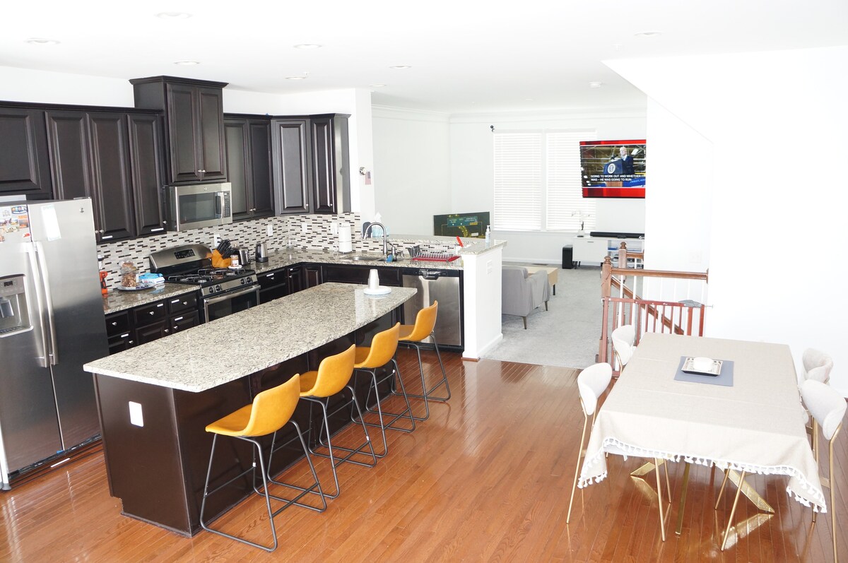 Spacious 4BR townhome near BWI (12 min) , Arundel Mills Mall & MD Live Casino (5 min), and Ft. Meade (5 min). Conveniently walk to a grocery store, coffee shop, stores and restaurants. Perfect for business travel, multigenerational families, and groups. Multiple spacious areas to gather and relax. Large kitchen equipped for cooking meals. Guests enjoy access to a community center with a gym, lounges, pool table, outdoor grill, & outdoor pool. Close to Baltimore, DC, Annapolis, and Columbia.