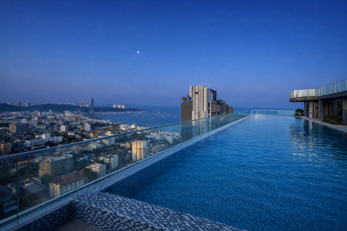 The Base芭提雅、高层海景公寓、市中心、无边泳池、步行海滩5分钟、无边际泳池、可住3人