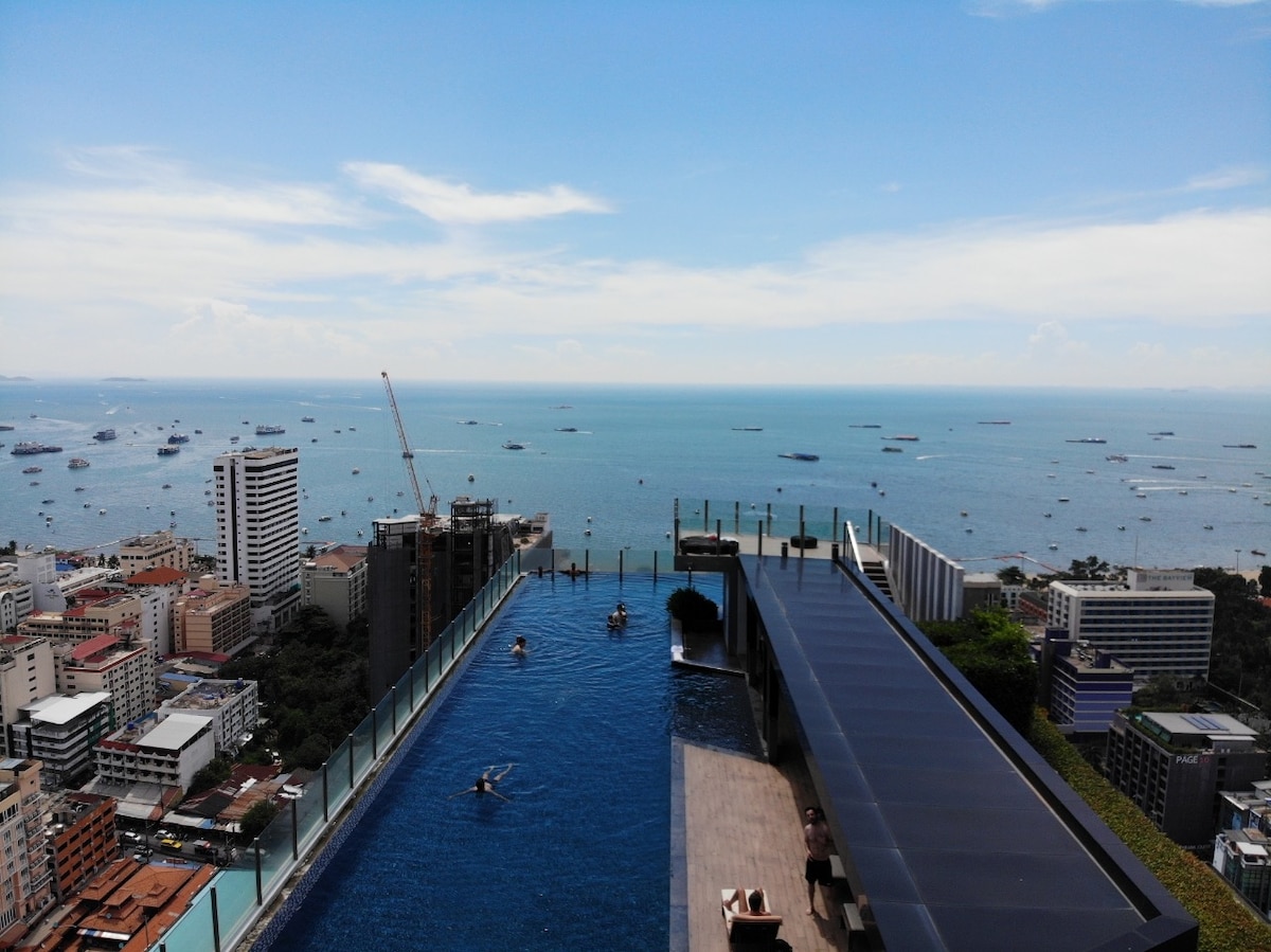The Base芭提雅、高层海景公寓、市中心、无边泳池、步行海滩5分钟、无边际泳池、可住3人
