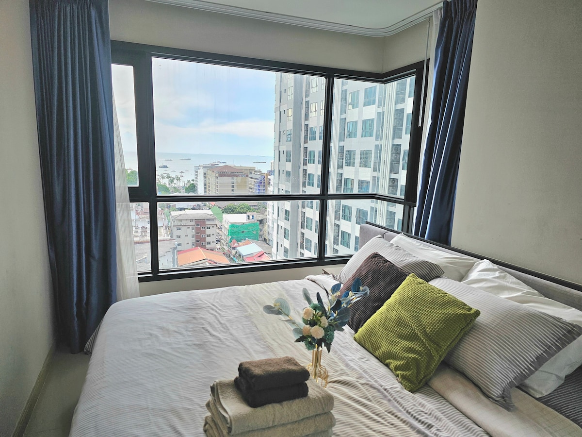 This ocean-view appartment sits in the heart of Pattaya ,putting you steps from the beach,Walking Street,the Pier,Central Malls are all within eacy reach.The 31st-Floor infinity pool offers panoramic viatas of Pattaya,where the horizon melts into the gilded spectacle of sunset,Inside ,Stylish tropical decor mixes vintage charm with modern comfort ,featuring a king-size mattress for premiums sleep .The perfect base for discerning travelers-with Nespresso coffee to start your day right.