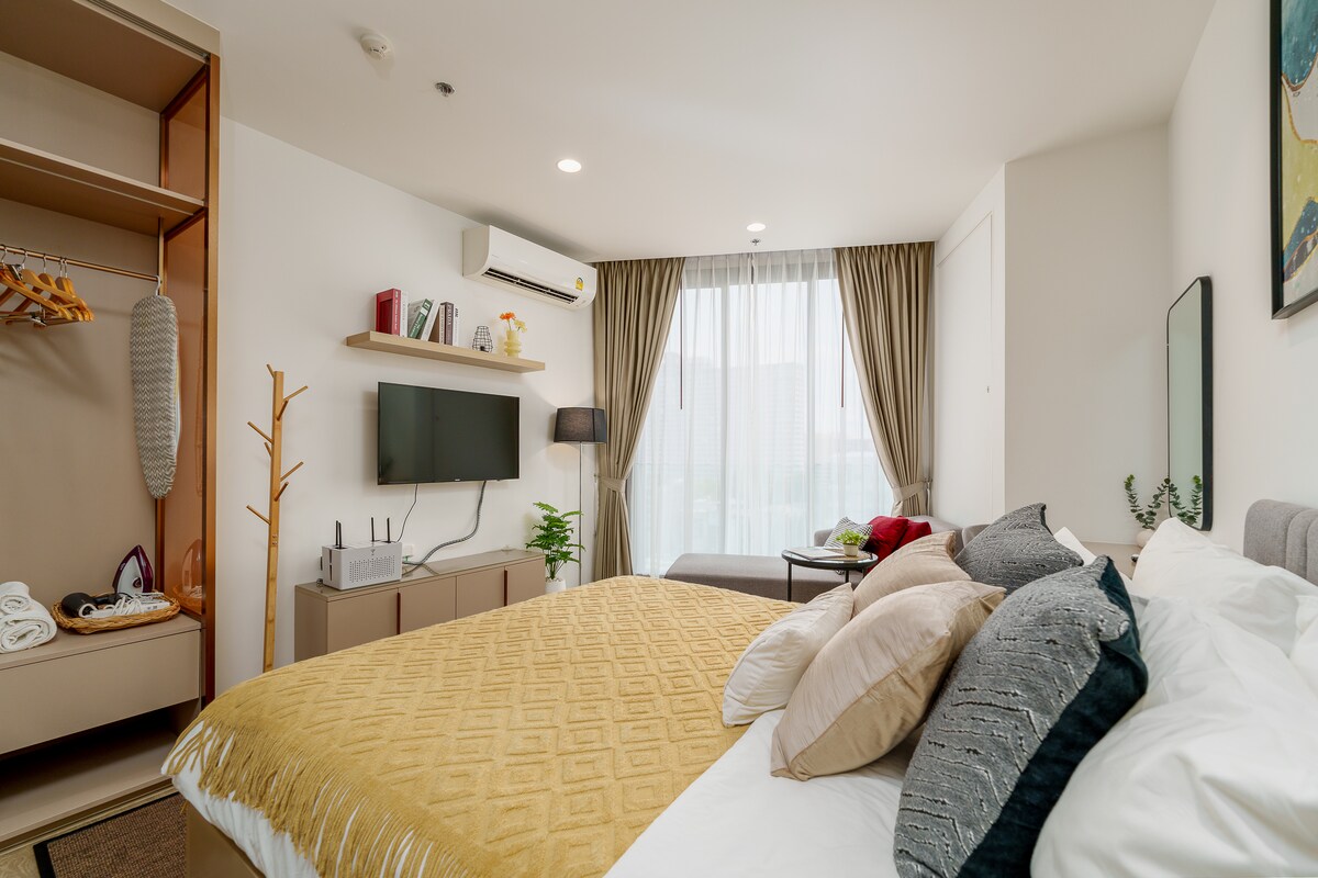 NEWEST! HIGHEST FLOOR! FUN AND LUXURY CONDO IN TOWN CENTER PATTAYA! ONE OF THE MOST BEAUTIFUL INFINITY ROOFTOP SWIMMING POOL. Enjoy a stylish experience at this centrally-located place. - 1 min walk to The Avenue - 3 mins walk to Central Festival Pattaya - 300 m walks to Pattaya Beach - 5 mins walk to Soi Bua Khao - 10 mins walk to Walking Street 1 Bedroom with Sea Views on 23rd Floor, 1 Living Room, 1 Bathroom, 1 Kitchen IN-ROOM High Speed WIFI Router. No Sharing With Others.