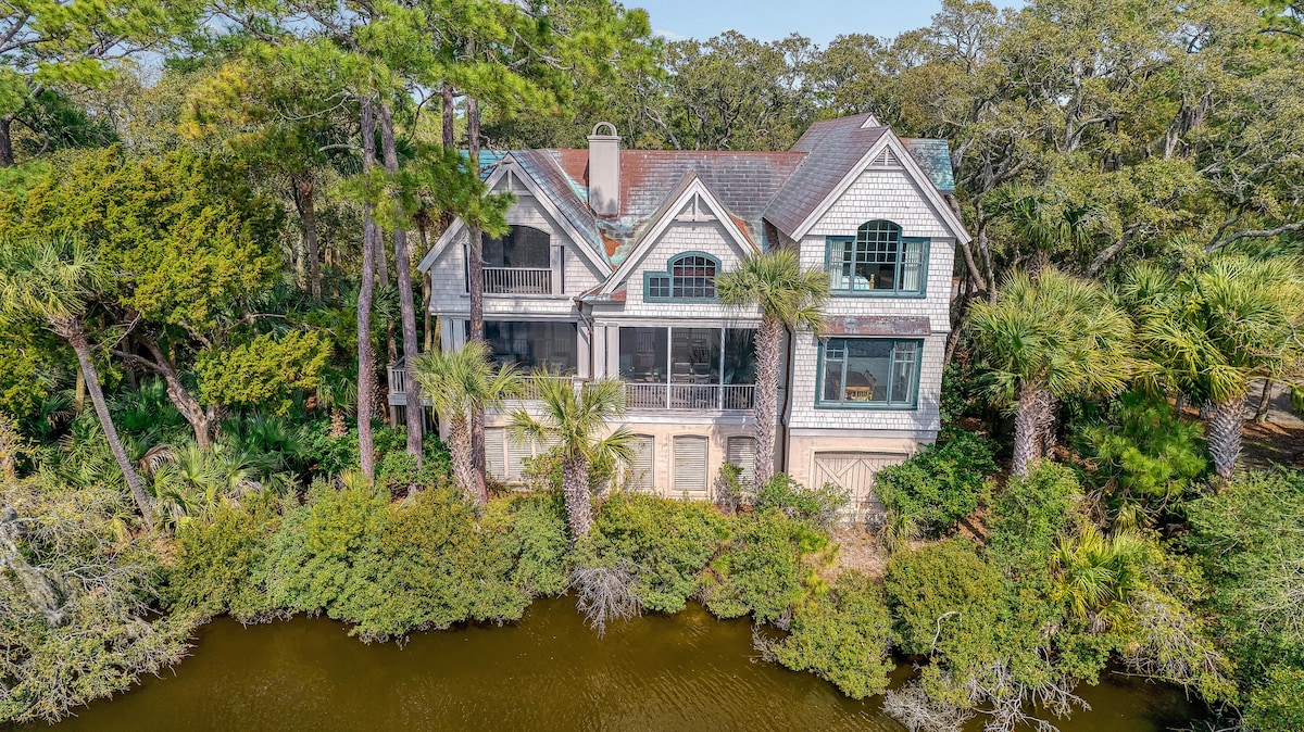 Marsh and creekside Luxury Treehouse nestled among historic Grand Oaks. Private Elevated TreeHouse that has closeup views of trees and wildlife from every oversized window. Sit back and relax on the large deck watching the ebb and flow of the tide as fish jump, birds hunt and fiddler crabs defend their bank. (This property has been granted an exemption and does not accept pets or Service animals due to allergies.)