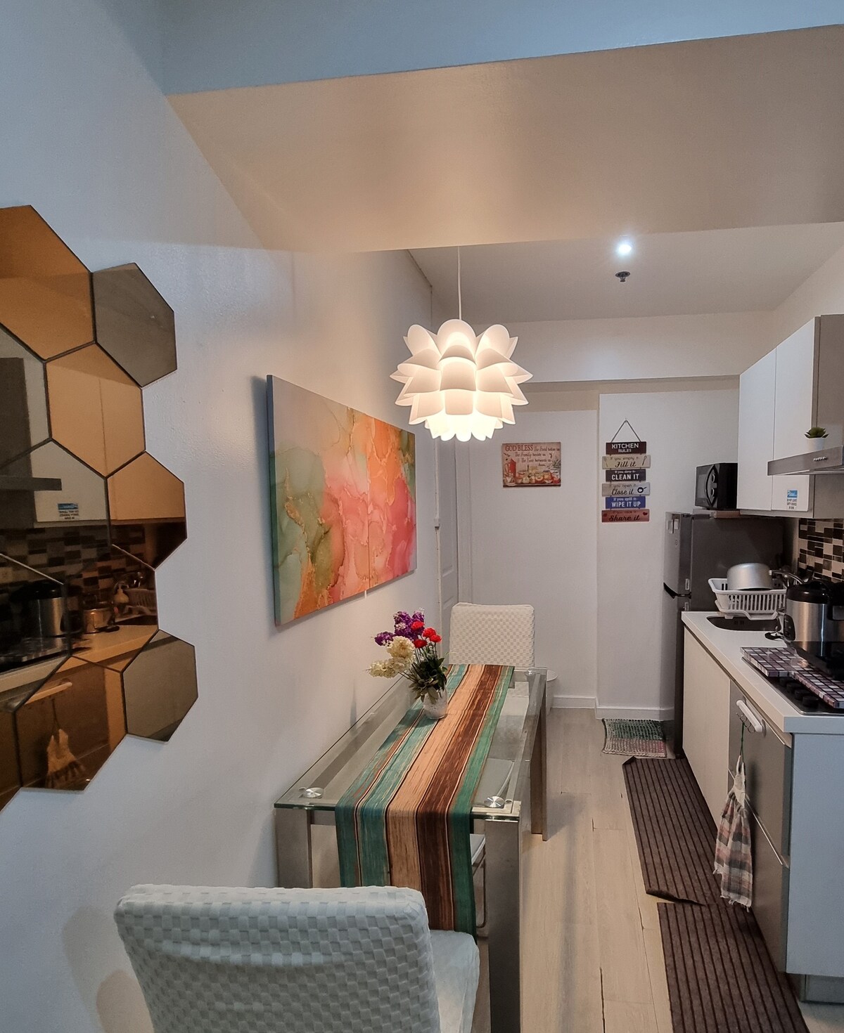 This special homestay is your home away from home. It is close to everything you need: malls, restaurants, church, market. You will have an opportunity to relax and recharge after a hectic days in school and work. UNIT INCLUSIONS: Double bed with extra floor matress Fresh linens Free wifi access Game cards Mini Karaoke Smart TV 55' with access to Netflix, Fully equipped kitchen 🧂Free condiments ☕️ complimentary coffee 🥛Free purified drinking water 🚿Hot & Cold Shower 🧖♀️Bath