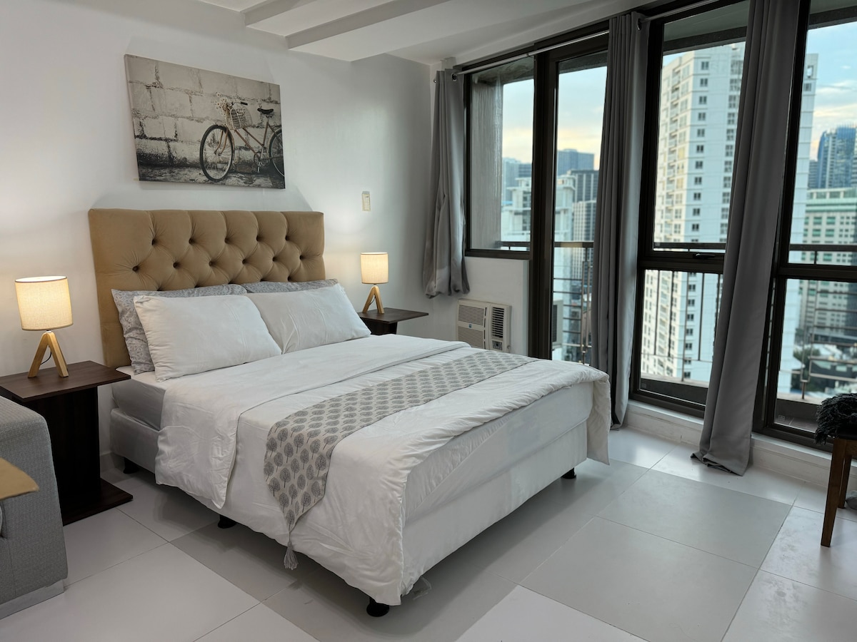 马卡蒂1卧室带阳台-城市和海湾景观/Netflix/无线网络