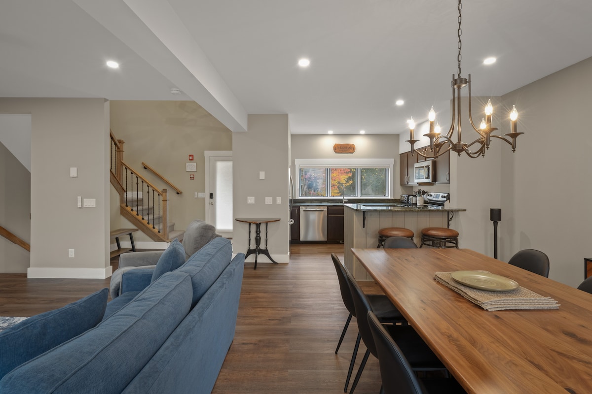 Renovated 3-level, 2 bedroom+ twin sleep loft, 2.5 bathroom townhouse on Mt Snow. For the non-snowy months, enjoy the outdoor heated pool, gas fire pit, grill, tennis courts & hiking trails up the mountain as well as other great local activities, lakes and festivals near by. In the winter, take the shuttle 1 mile to the mountain and take the private ski trail back home. NOTE: Pool is Open between Memorial Day & Labor Day