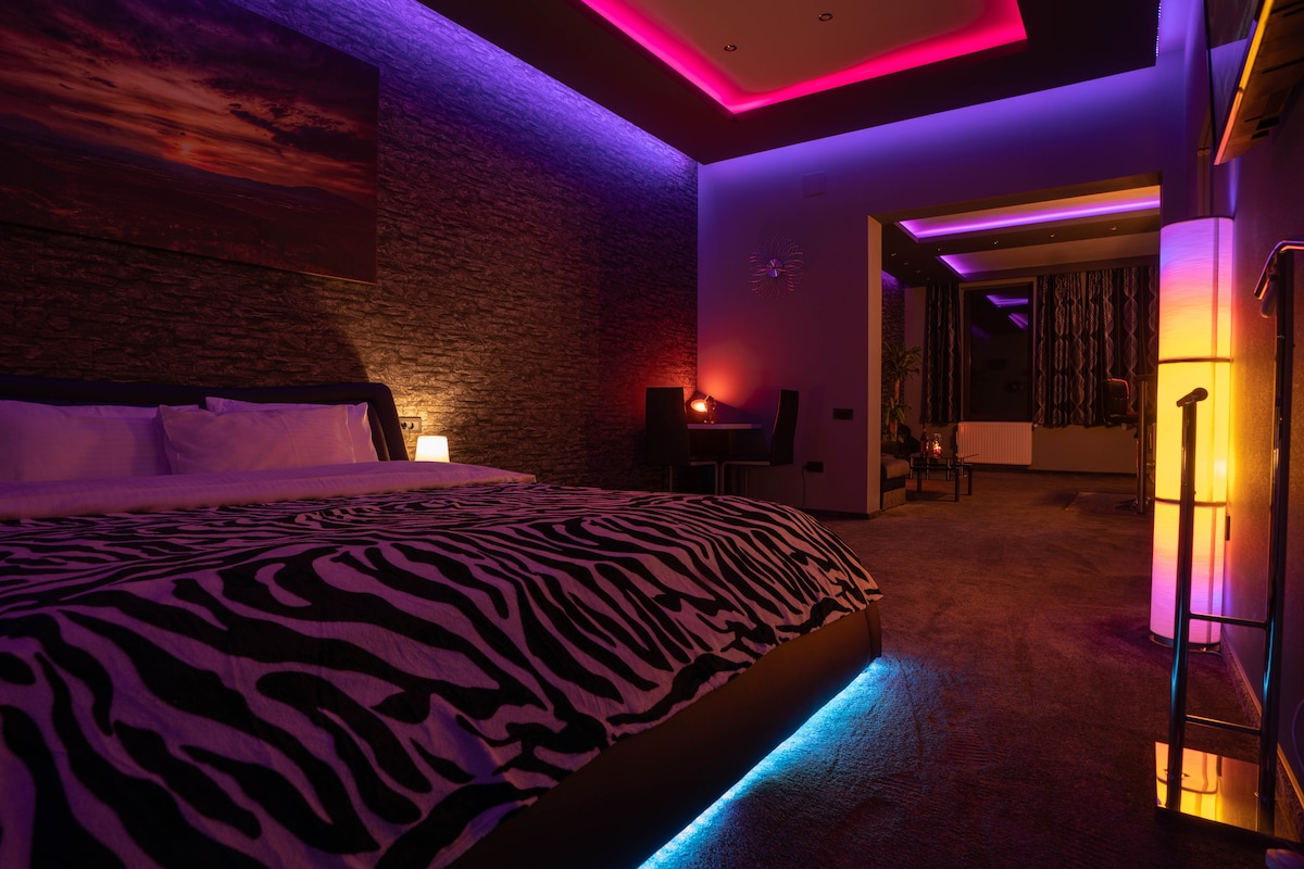 ROOM “88” – A Refined Blend of Modern Design and Comfort As part of an exclusive collection of three designer apartments, ROOM “88” seamlessly integrates contemporary aesthetics with state-of-the-art technology. Thoughtfully designed for a warm and inviting ambiance, it features plush carpets, fully adjustable LED lighting, and central heating for year-round comfort. Situated within a lush garden at the foot of Mount Tâmpa, it offers a tranquil retreat just a 5-minute walk from the forest.
