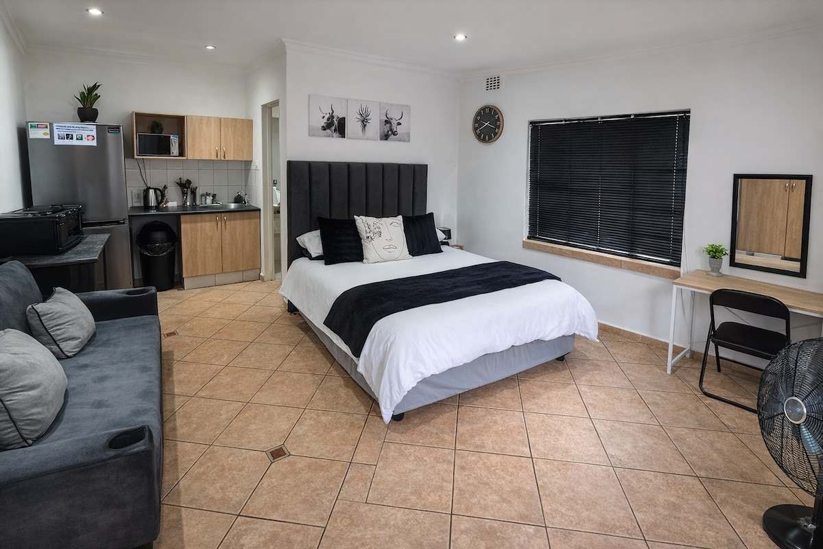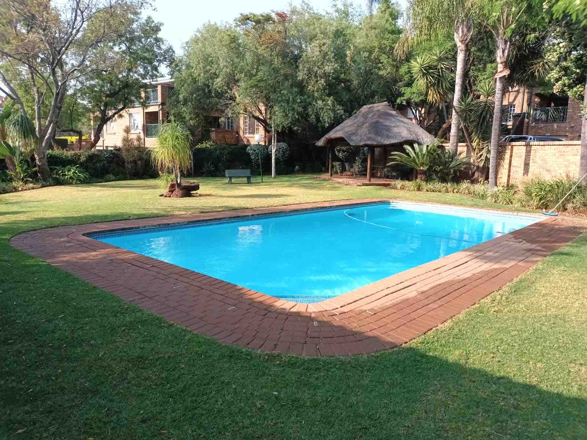 Situated on a secure property in an upmarket suburb with easy access to the highway. This Studio apartment is ideal for a couple with plans for a night on the town, or a weekend of quiet bliss. Easily Uber to Menlyn shopping centre or events @Times square on Menlyn Maine. A private place with a kitchen; a full bathroom; TV room and space to relax on a patio overlooking the pool. Ideal for a student or young professional looking for a fully furnished space for a short term stay.