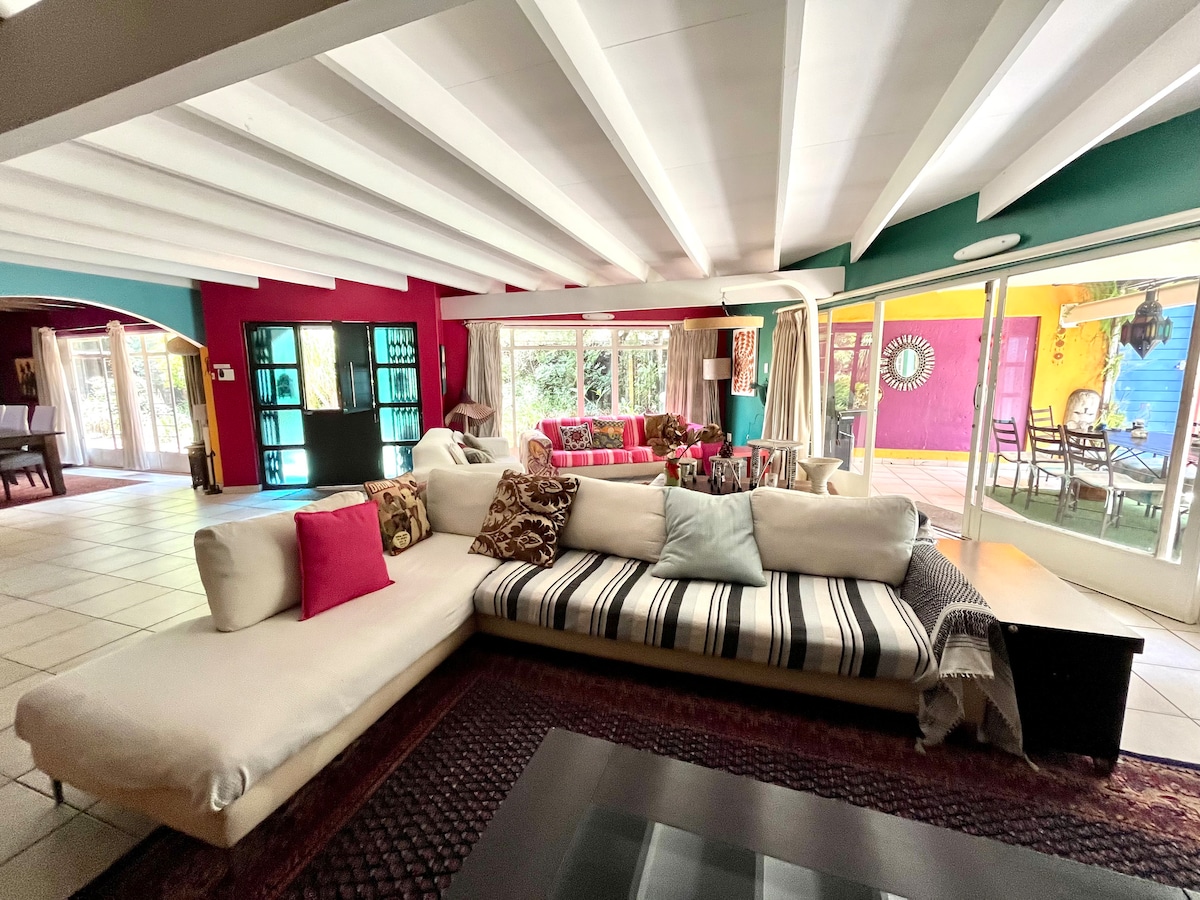 Nestled against the Magaliesberg in a lush, tree filled, established neighbourhood. Peaceful. Magnificent view over the city. Ideal for short to long stays; family visits or business trips. Very central, close to hospitals. Only 3km from N1. Private deck with braai. Modern interior. Open plan: full size fridge, kettle, toaster, microwave, air fryer oven, 4-plate gas stove. Serviced regularly. Laundry included at a small fee. WiFi and DSTV. Baby cot and toys if needed. Only small pets allowed.