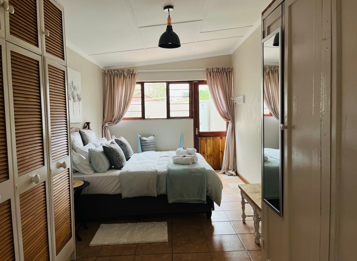 This peaceful and private garden cottage has a studio layout and is set in between large trees where the sound of birds and a water fountain accompanies you. We have solar power and back-up water. Centrally located between Castle Gate, Menlyn Shopping Centre and Brooklyn Mall. Less than 5km from Mediclinic Kloof hospital and Groenkloof Life hospital. Fine dining and take-aways can be found within a perimeter of 2 km. The cottage has a fire place for those chilly nights and a fire pit for fun.