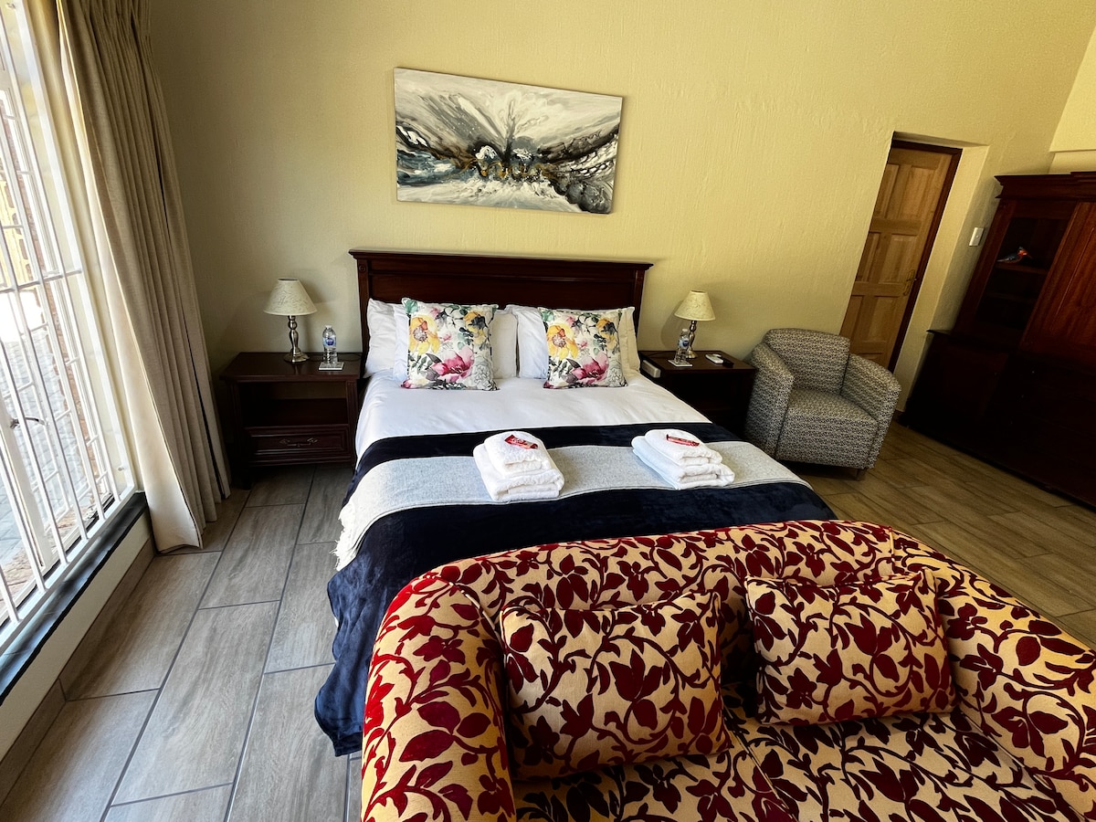 Situated in the safe Wapadrand Security Village, this self-contained flatlet with private patio is the perfect place to stay, may it be 2 nights or 2 weeks! It consists of a large room with 2 beds (double & single), a beautiful en-suite bathroom with a shower and a bathtub. The kitchenette contains basic kitchen amenities such as a mini fridge, microwave, kettle and complimentary coffee & tea. For convenience the parking is right at the entrance door.