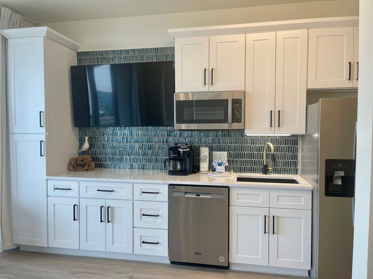 Destin Resort Vacations is proud to present this newly renovated, luxury 5th floor beachfront condo unit at Destin West Resort! Sleeps 4 comfortably with a queen size bed and a queen size pull out sofa sleeper. Walk in luxury tile shower, two large tv's each with cable tv & Roku streaming. Enjoy unique beautiful Gulf & bay views from your balcony. Convenient access to the parking garage and all Destin West Resort amenities which include direct beach access, 7 pools, 3 hot tubs & 700’ lazy river.