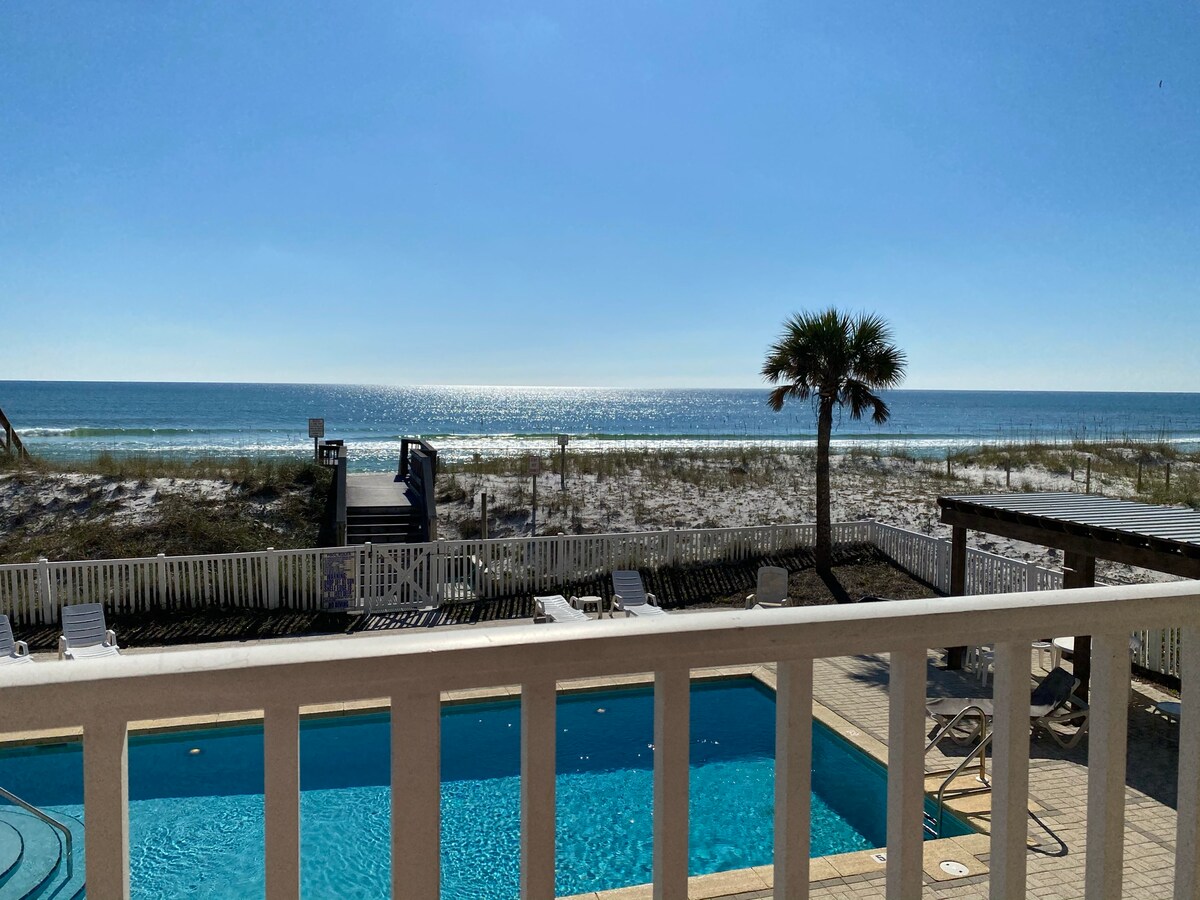 Nestled on shimmering Gulf shores, The Palms #201 invites you to unwind with jaw-dropping oceanfront views. This 2-bed, 2-bath sanctuary is your ticket to an unforgettable coastal retreat. Steps from the water, this guest favorite blends relaxation and rejuvenation for a home-away-from-home feel. From March through October, we provide complimentary beach service with two chairs and umbrella—a $40 daily value included free! Pure paradise is at your doorstep. Book this dream coastal escape today!!