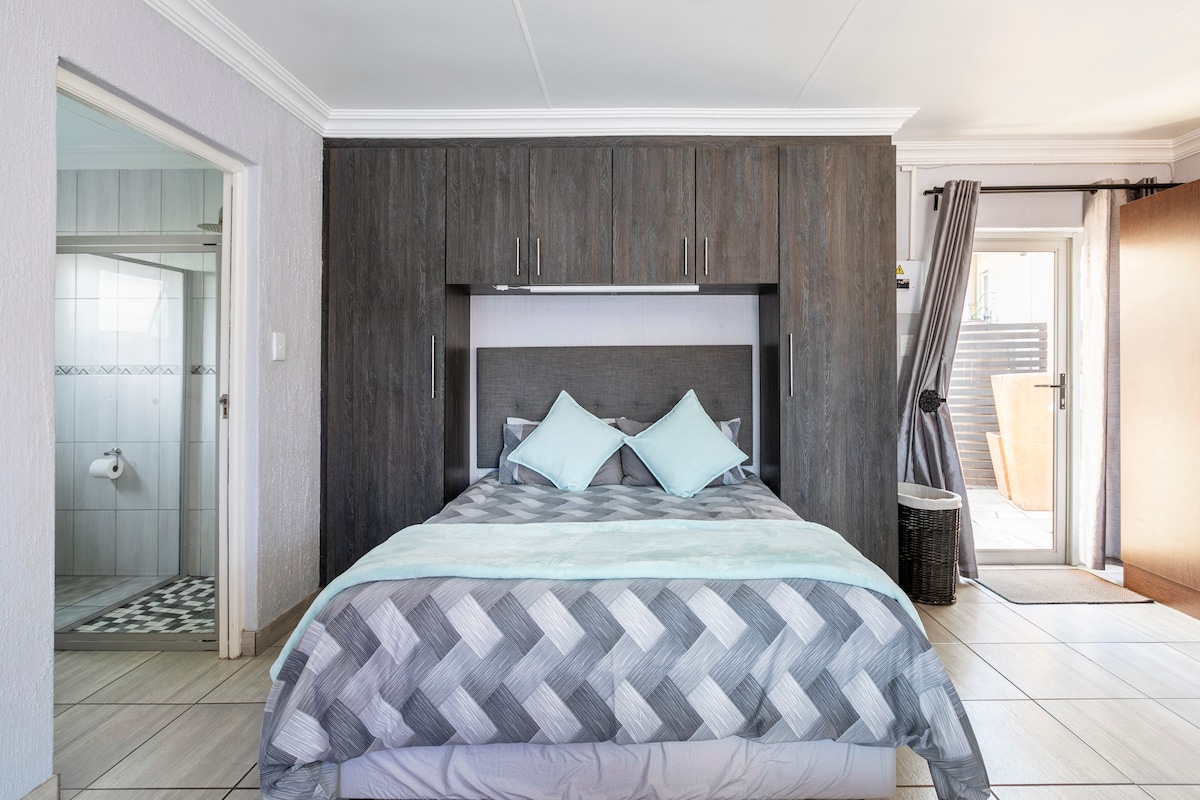 Safe, private and STYLISH cottage with BACKUP power & water. Separate private entrance. Dedicated work space + fast UNCAPPED WiFi. 2 en-suite bedrooms. Egyptian cotton sheets & ELECTRIC BLANKETS on beds. 24 hour street SECURITY. Parking behind gate. Fully equipped kitchen with stove, oven, fridge, microwave, kettle, toaster and NESPRESSO. Coffee, milk and rusks provided. Heater. Private garden. NETFLIX. Walking distance from park & restaurants. Rosebank mall/Gautrain - 2km Sandton City - 5km