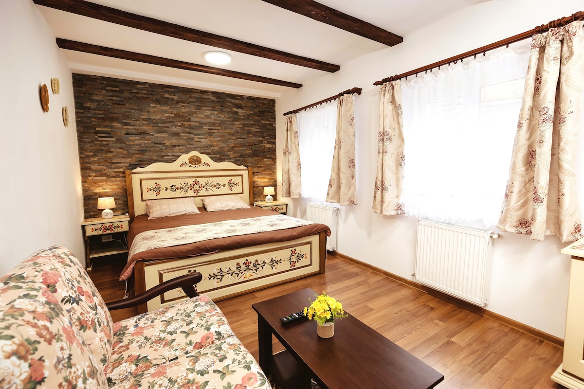 ✨ Discover a cozy Transylvanian escape in Sibiu’s enchanting Old Town! This rustic apartment, designed in traditional Transylvanian Saxon style, is just steps from the famous Bridge of Lies, Council Tower, and Piața Mică. Whether you're a couple, solo traveler, or a group of three friends, you’ll find everything you need for a memorable stay in the heart of Sibiu. Here for leisure or a business trip? This beautifully designed space offers the perfect blend of modern comfort and medieval charm.