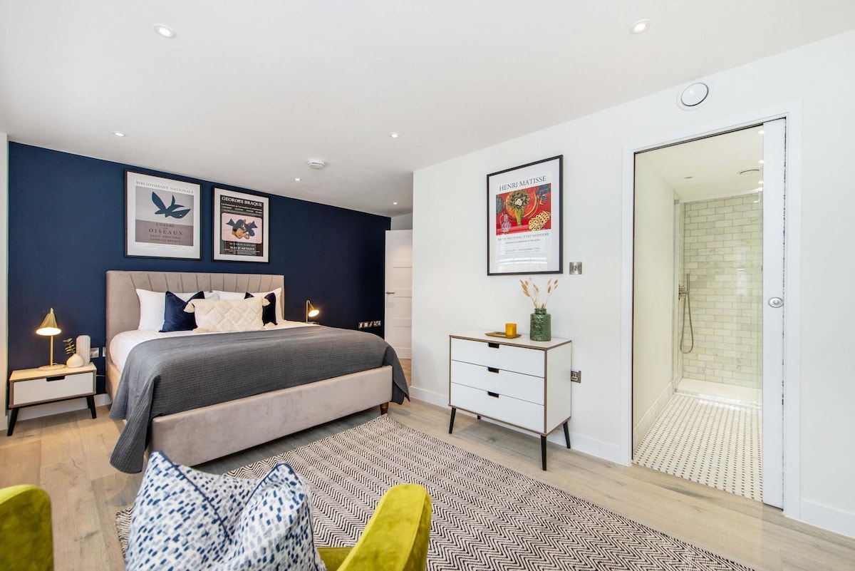 Welcome to a luxurious, quiet duplex in the heart of London. Enjoy lateral living with a huge chef's kitchen and a dining room that seats 10. Unwind with a 70-inch TV featuring Dolby Atmos or step out to a terrace with a BBQ and fire pit. Each of the 3 double bedrooms has its own bathroom for ultimate privacy. Minutes from Kings Cross, Granary Square, and local gems like great pubs and the Islington Tennis Centre. Your ideal London stay awaits!
