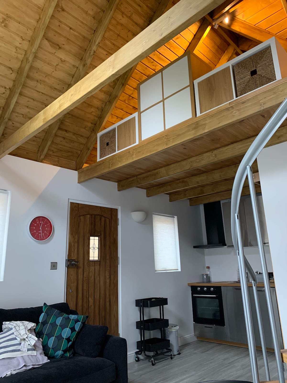 Welcome to the Hampton Court Hideaway, a peaceful and relaxing guesthouse (converted detached double garage), beautifully designed to a very high standard and powered by renewable energy. The property comes with a fully equipped kitchen, bathroom with walk in shower, 2 double beds (2nd on mezzanine) and one sofa bed upon request. We also have an EV car charger available on request. The space can fit up to 5 for shorter breaks, and comfortably 2-3 for longer breaks.