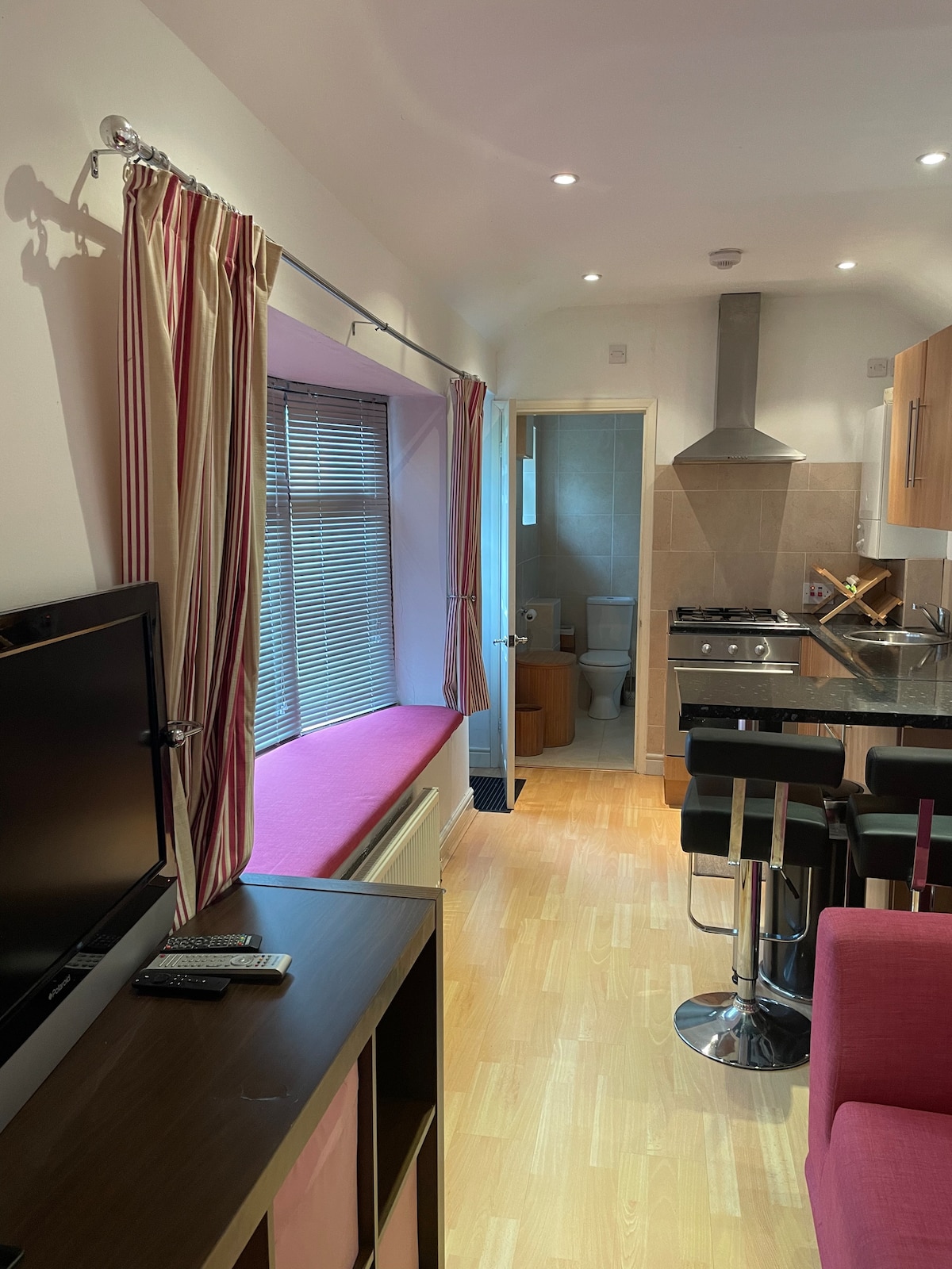 A beautiful self-contained garden studio, located in the heart of historic Highgate Village. The 320 sq foot studio is equipped with King size bed, kitchenette, Bathroom with spacious shower, 55” HDTV, BBC iPlayer, Amazon & Netflix. There is a semi-private outside patio with seating. The village has ten pubs/restaurants within a few minutes walking distance, along with the beautiful expansive Hampstead Heath and Highgate Cemetery. With excellent bus and tube transport connections close by.