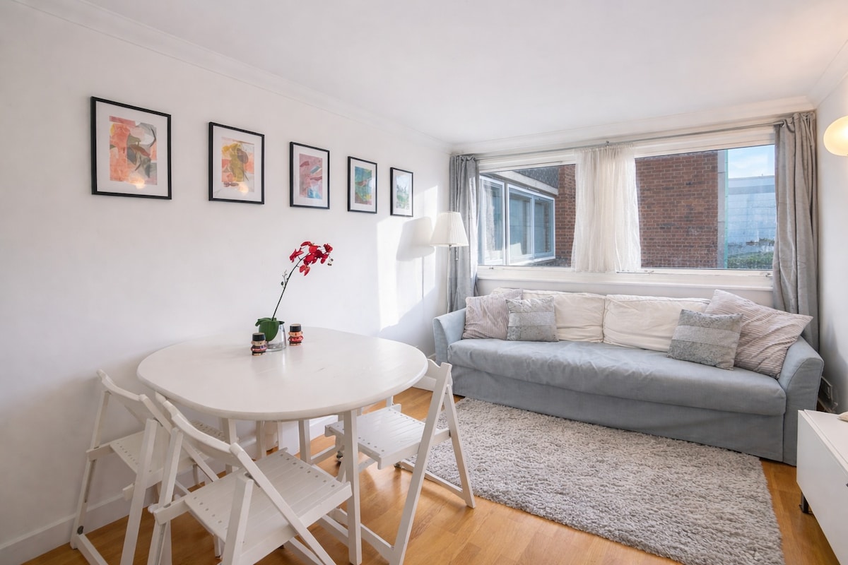 Welcome to your peaceful retreat in the heart of London! This clean, cozy 1-bedroom apartment features a luxurious queen bed. Its unbeatable location places you within 100 meters of top restaurants, pubs, and supermarkets. Nestled on a quiet dead-end street, you'll enjoy tranquility despite the central location. Perched on the 7th floor with lift access, the flat stays refreshingly cool even on warm days with the balcony door open. Enjoy fast Wi-Fi and elegant wooden floors throughout.