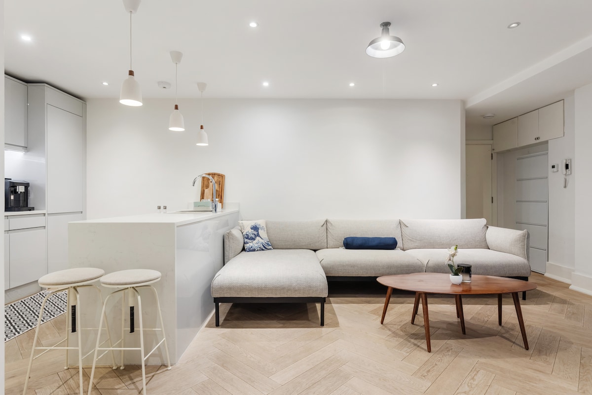Chic modern apartment in the heart of Fitzrovia Discover London from this modern, architect-designed flat nestled in this upscale neighbourhood. It offers easy access to central London's shops, eateries, and bars. This space is ideal for solo travellers, business travellers, or couples. It boasts a full kitchen, a pristine bathroom, a comfy double bed, and high-speed internet. Enjoy this exciting, buzzing neighbourhood!