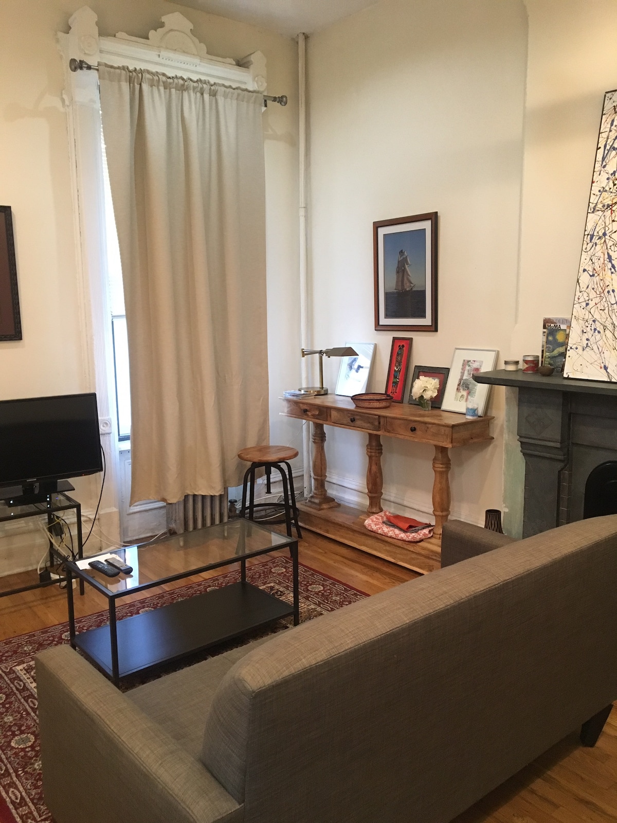This is a spacious private Studio in a classic Brownstone type building located in the heart of Central Harlem The apartment is furnished with a full size bed and a Sofa and Dinning Table This is a very comfortable Space and newly renovated in my house We have security on the exterior face of the building