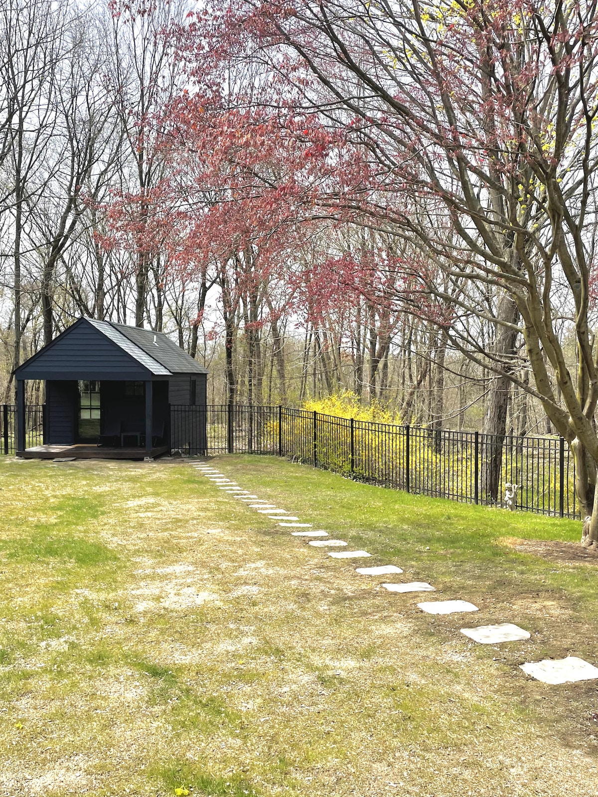 Brand new, light-filled private cottage guesthouse overlooking the woods in the heart of Greenwich, CT. Floor to ceiling windows, radiant heat bathroom floors, queen Casper mattress, a dedicated parking spot, Wi-Fi, TV, kitchenette with full fridge, Keurig coffee maker, microwave, toaster and induction stovetop and all utensils. Perfect for a weekend getaway or a quiet place to work.