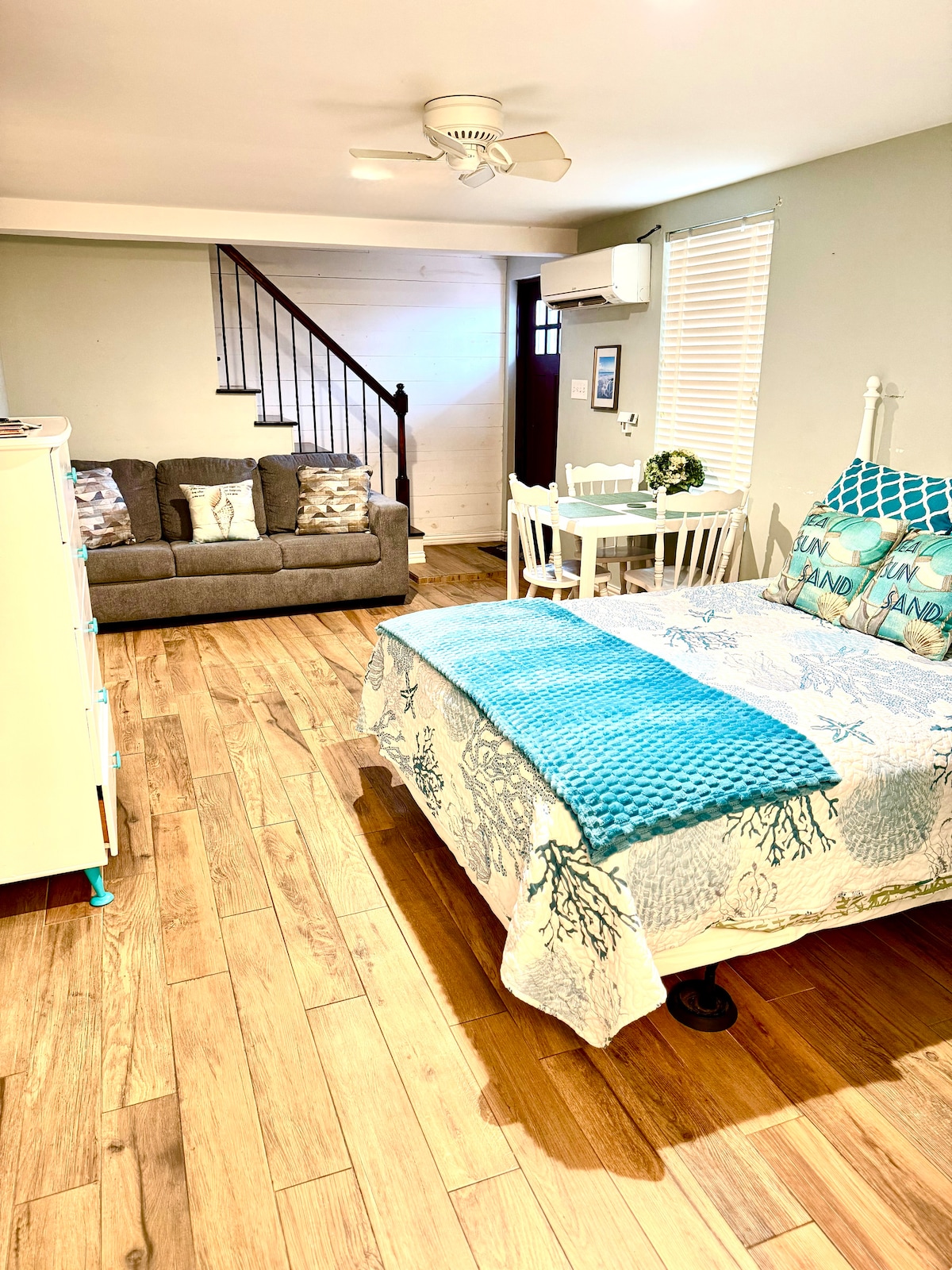 Modern Comfort in a Historic Galveston Flat 🌴✨ Stay steps from the East End Historic District, The Strand, and cruise terminals in this light-filled 1912 upstairs flat. We’ve kept the original charm—high ceilings, big windows, hardwood floors— updating for today’s living. ☕ Start your morning with a fresh brew from the Keurig (pods included). 📺 Stream your favorites on the 43" Smart TV. 🍳 Cook like home in the fully stocked kitchen. 🛏 Sleep soundly on a Nectar memory foam mattress.