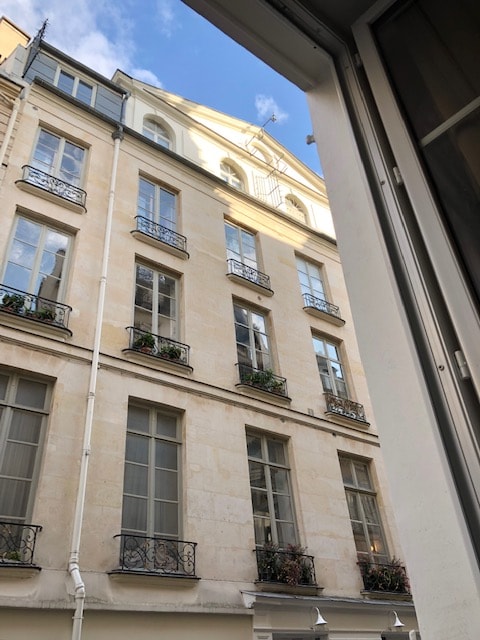 This splendid, bright and well equipped apartment ideal for 2 people is located in the very heart of Paris. You can combine the calm comfort and charm of an authentic eighteenth century "Parisian home" with antique Versailles parquet, ceiling with beams and a beautiful marble bathroom. The apartment has a fully equipped kitchen (fridge, microwave, stove and kitchenware including a kettle and Nespresso machine), a Murphy comfortable 150 bed suitable for 2, Wifi, TV and music system.