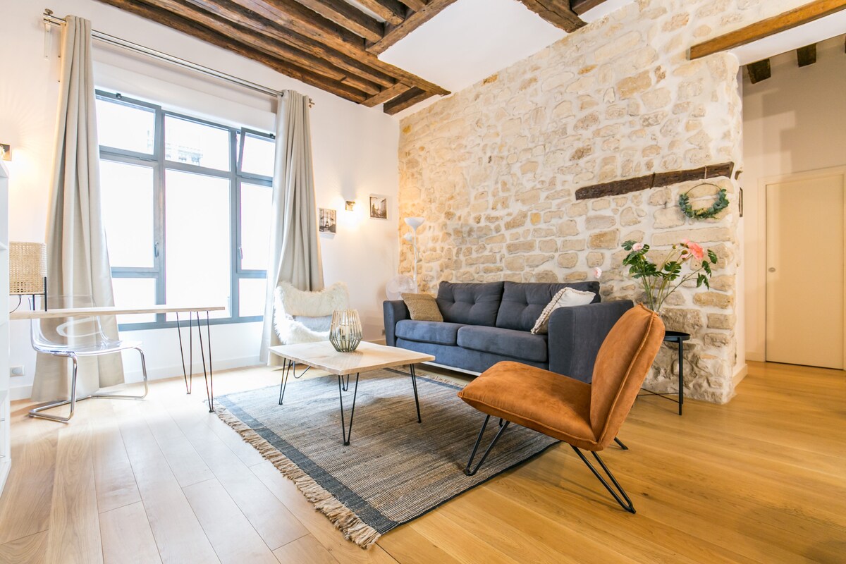 Exceptional apartment fully renovated featuring a large space, coziness and quite in a trendy district (Le Marais). You will feel like at home and will be able to relax from a busy day of sight seeing. From the apartment, you can easily walk to all the key spots to visit in Paris (Louvre, Musée Pompidou ..). Close by, you also have plenty of restaurants (for various budget) and shops. In the large living and dining room, you can also share some meals with your friends to live a great experience