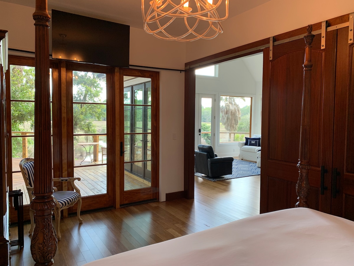 Our architect said, “this is NOT a garage, it’s a Garden Folly!” Our Guest House has a bird’s eye view of the rose covered pecan tree and a vista of the marsh and the Wappoo Creek. When we rebuilt our 1930's garage we saved all the beaded siding and pine floor. My husband enjoyed incorporating many design elements and creative ideas. It was quickly becoming the Taj Garage. We decided it was just the kind of property we enjoy when we travel, so, Voila! we decided to share it with you!