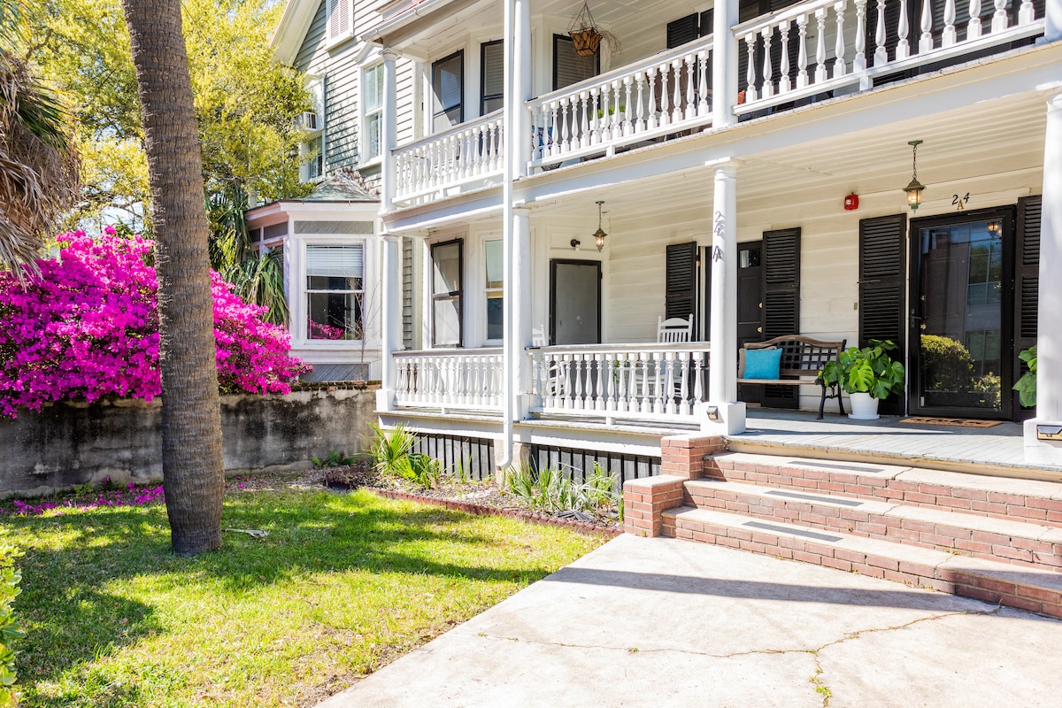 This historic property was built in 1838 with original porches to this grand Charleston home. Full renovation in January 2023 to create the beachy, coastal, surf chic spot it is today. Updates include new kitchen, two new bathrooms & fresh paint. Relax surrounded by a fun vibe and great local art. Downtown dining and bars are a short stroll away but we are still tucked in the quiet neighborhood close to MUSC Hospital. Walkable to Upper King Street nightlife and dining.