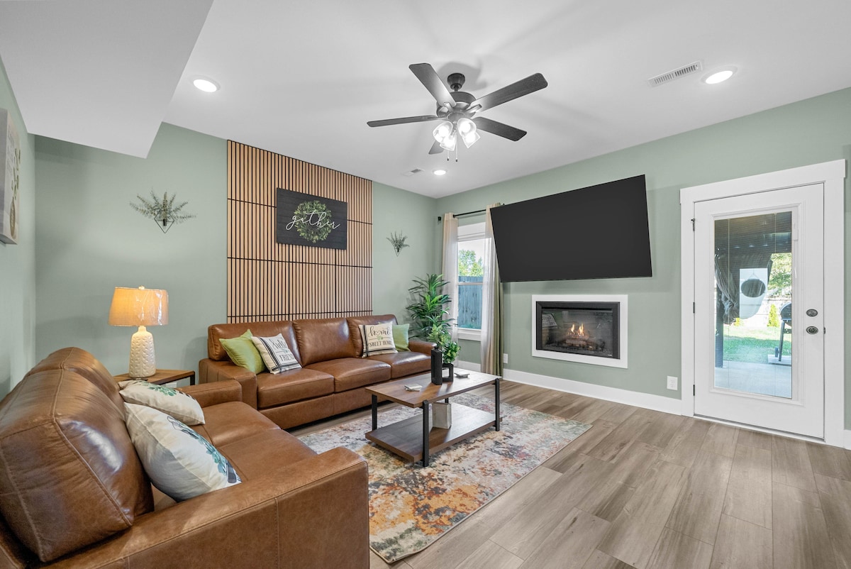 Kick back and relax in this calm, stylish space. With 2 living rooms & an outdoor living area, there will be plenty of space for you to spread out and get comfy. New 65" Smart TV & long comfy couch - perfect for movie nights with the whole group! Local Attractions- 5 miles from Downtown Clarksville (~10min) 15 miles from Fort Campbell (~30min) 45 miles from Downtown Nashville (~45min)