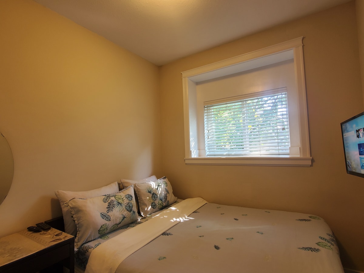 This bright above ground one bedroom with queen size bed with private entrance. It’s the perfect place if you need a short stay while working in town, or in the process of moving into your permanent location, or here to visit family. Located in Central Coquitlam. 1 Block from Poirier Recreational Centre-swimming pool, hockey/lacrosse arena, gym, & library. Blocks away from Mundy Pool. Bus stop outside front door. 40 minute commute to downtown Vancouver via car. 10 min walk to grocery stores