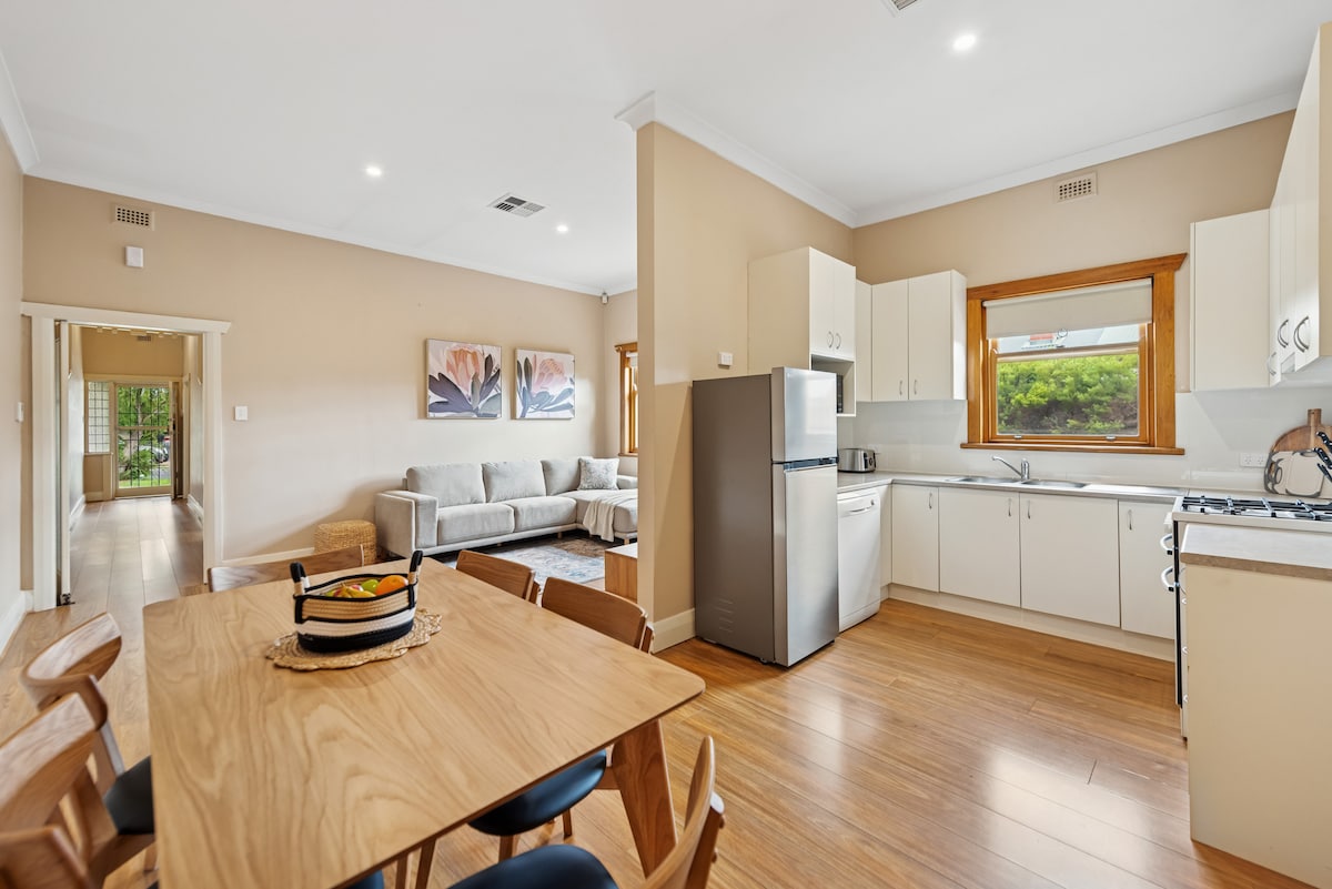 Step inside this restored cottage, a peaceful retreat in Norwood. With cafés, restaurants, and shops just 650 m to The Parade, it’s an ideal location for exploring Adelaide. The home features two spacious bedrooms with king beds for couples, friends, or longer stays. Guests love its character, modern comforts, and cosy atmosphere, making it favourite for those seeking comfort and style. Located 3 km from the CBD and 5 km from Adelaide Oval, it offers a convenient and tranquil base for your stay.