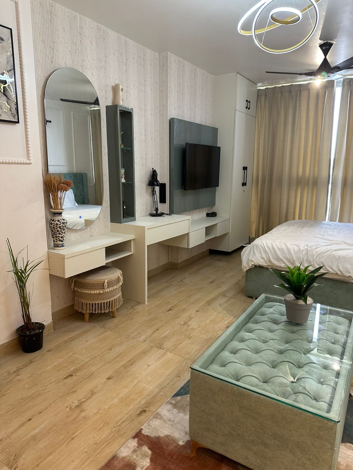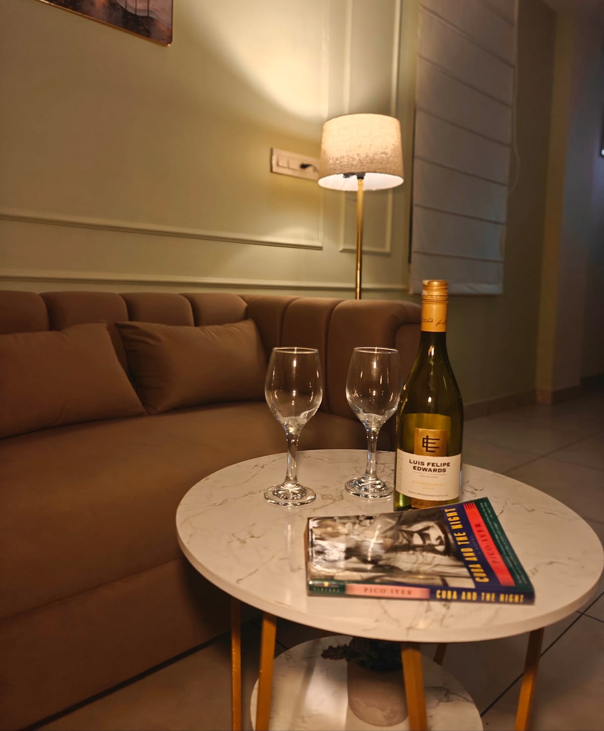 Centrally Located Apartment with railway station just 4 mins away? - you get it Fast Wifi along with 42inch TV and OTTs for entertainment? -you get it Microwave, Refrigerator, RO, Induction for fooding needs? - you get it Access to gym & infinity pool? - you get it Amazing Interiors with comfortable bed? - you get it! This aesthetically designed apartment leaves nothing behind when it comes to comfort, luxury and amenities. Need we say more?