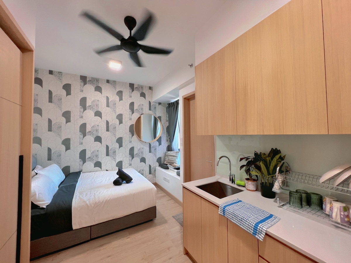 Welcome to your luxury urban retreat in the heart of Kuala Lumpur! Enjoy a hybrid studio apartment✨ Features include: • A plush queen-size bed with hotel-grade linens • Fully equipped kitchen • Air-conditioning & ceiling fan • Smart TV with Netflix access • Fast Wi-Fi • Washing machine Whether you’re here for work or leisure, the space offers the balance of warmth and comfort!